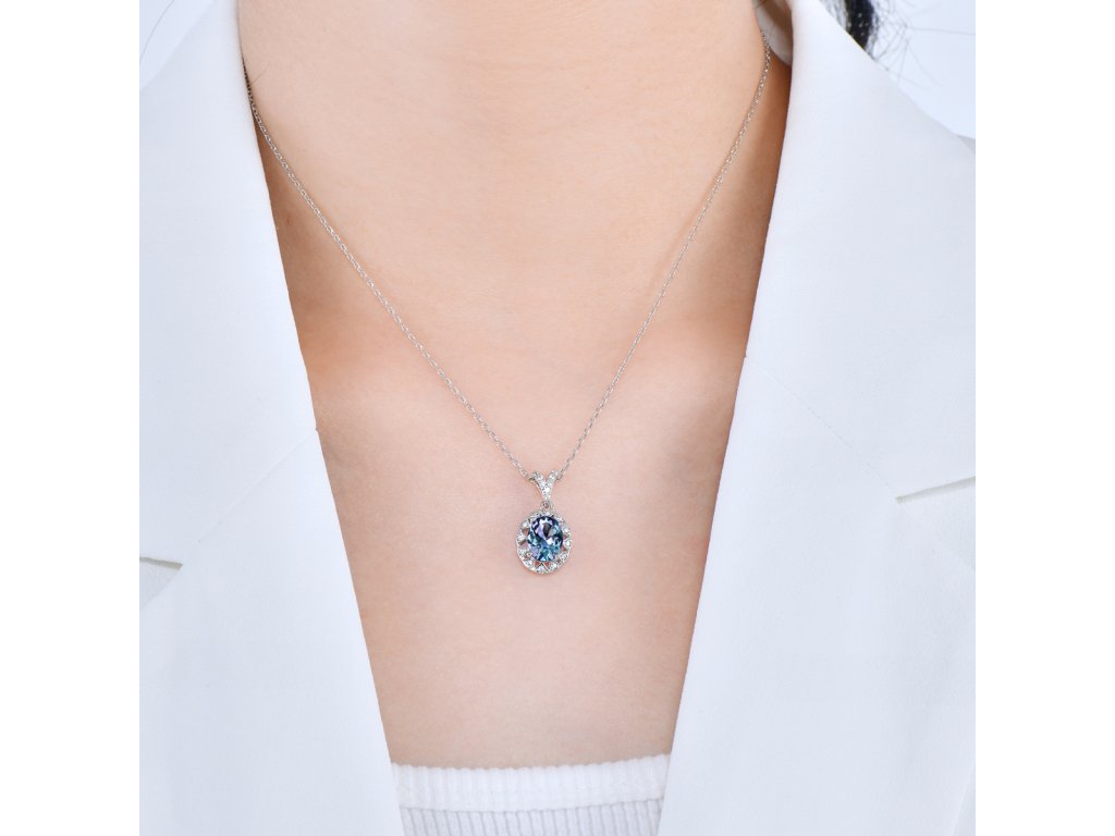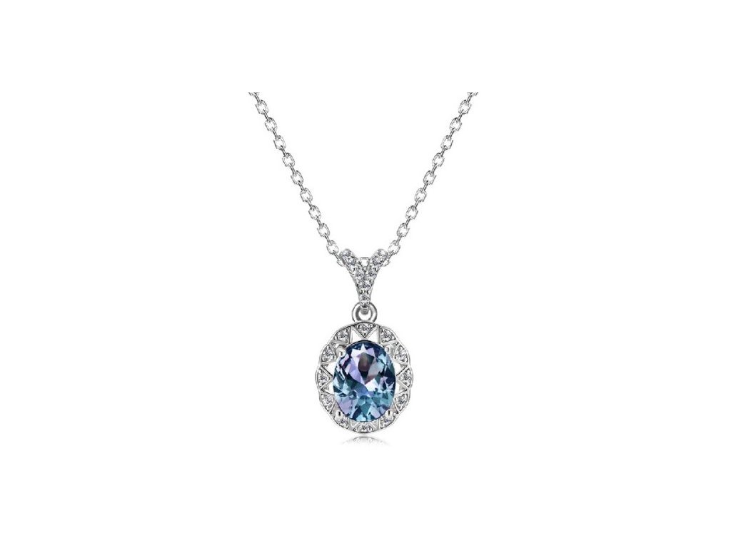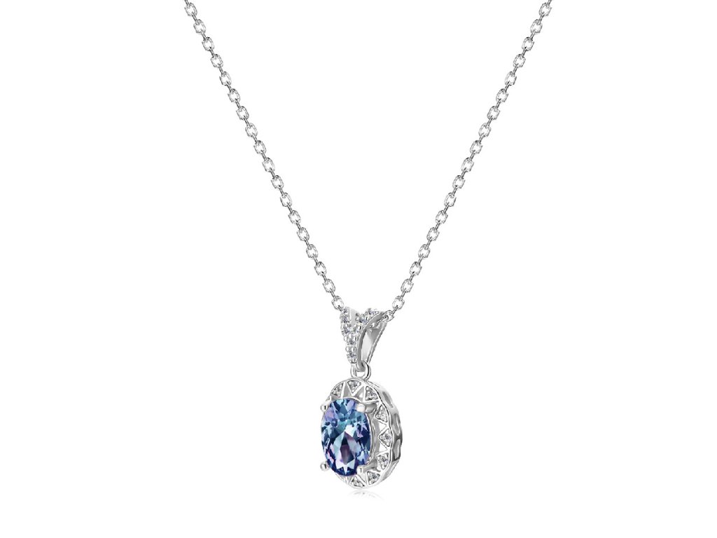 - Luxusný strieborný náhrdelník pozlátený 18k bielym zlatom s Alexandritom a zirkónmi. Originálny dizajn náhrdelníka, kvalitné spracovanie a materiál, ručne dohotovené.
