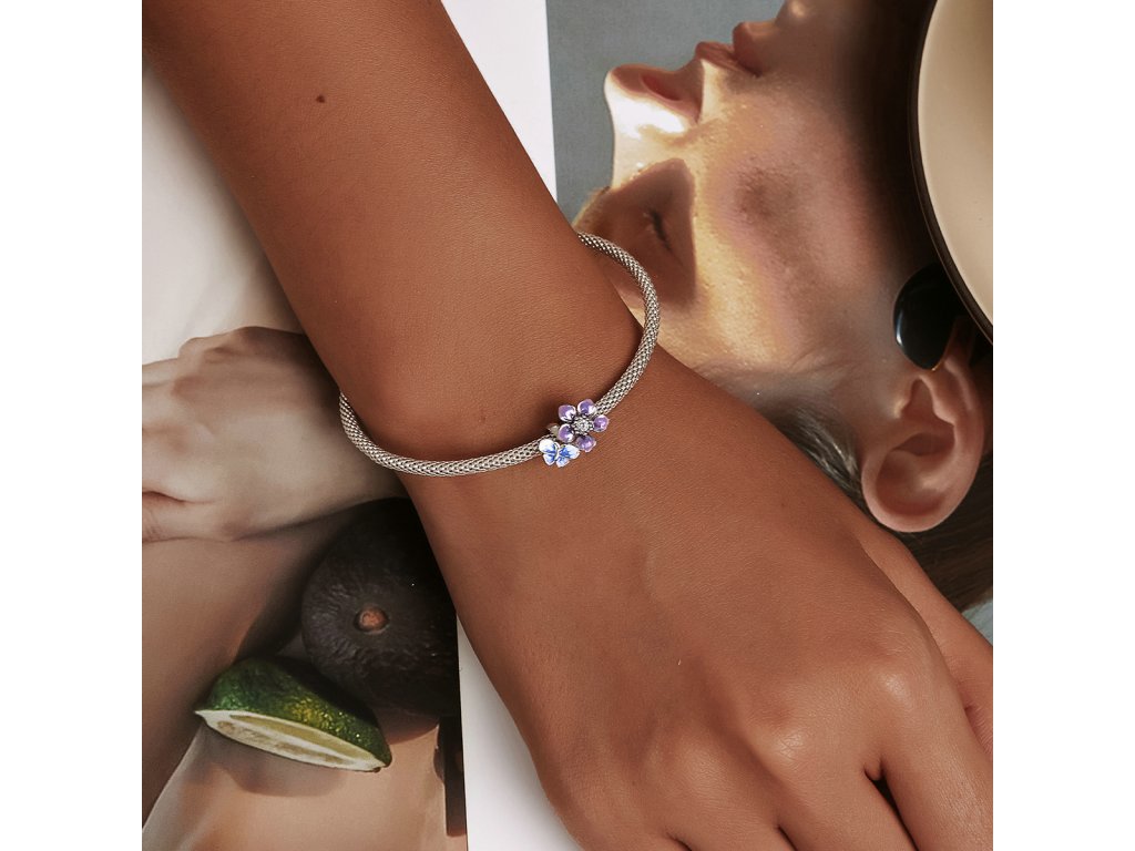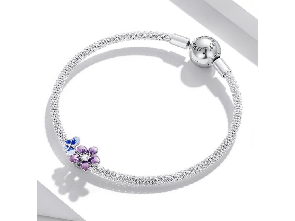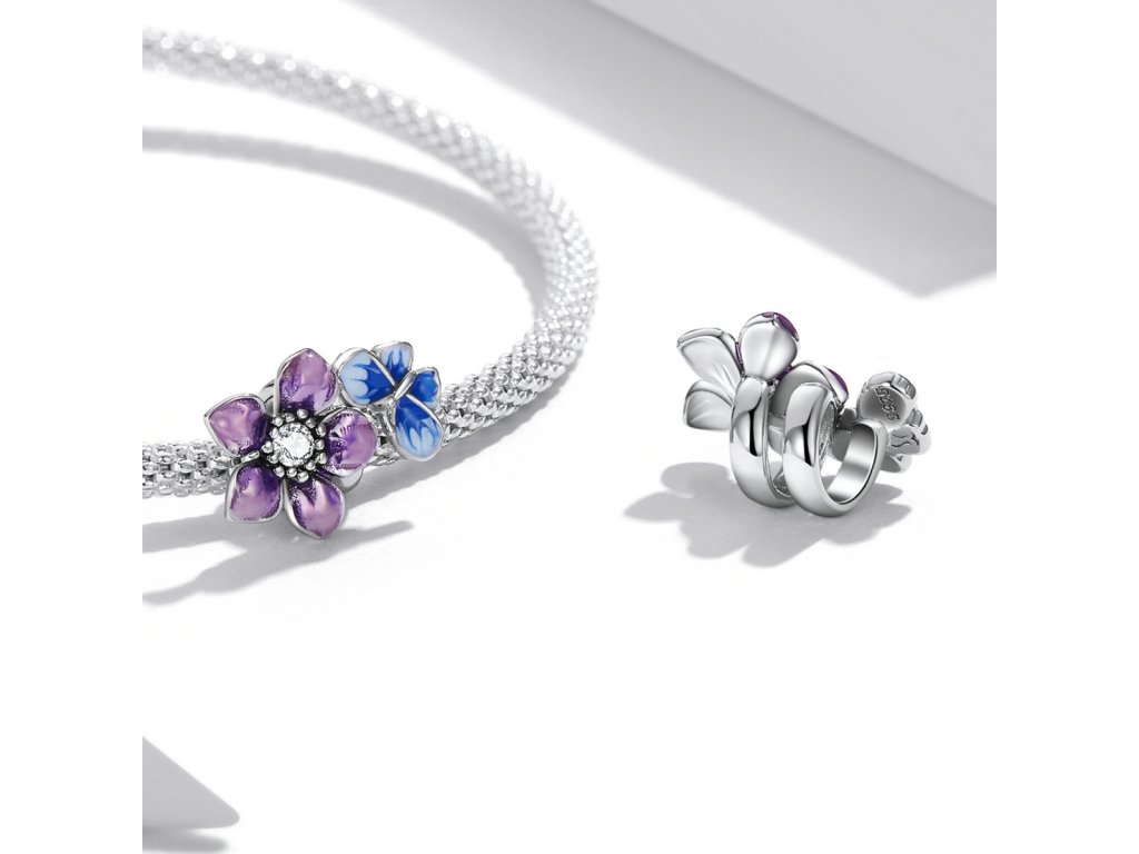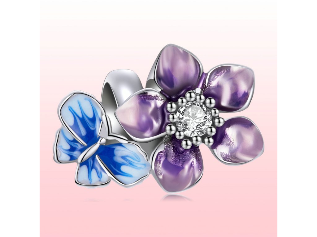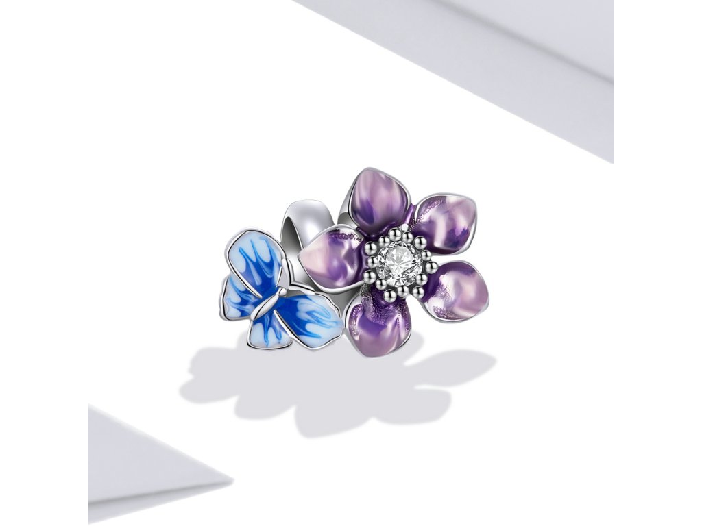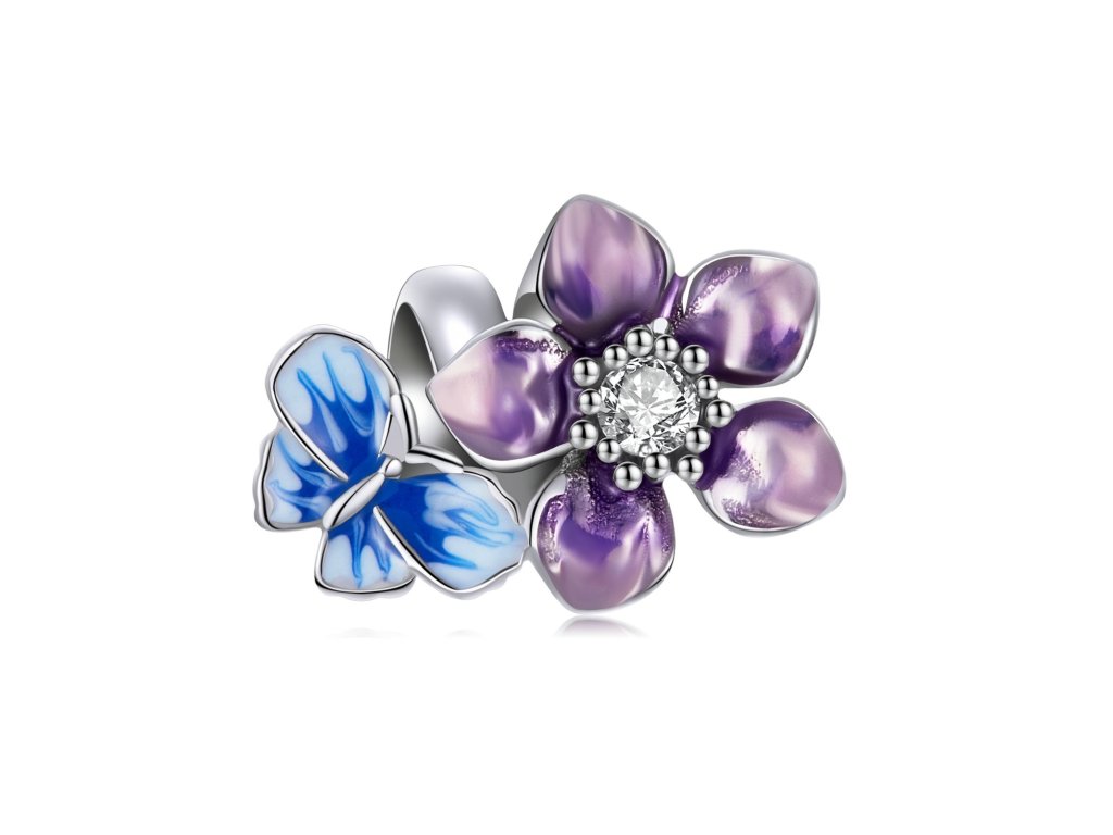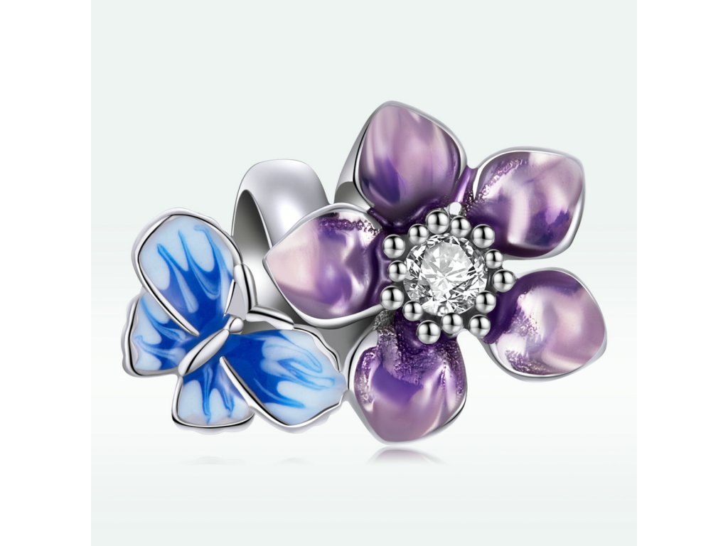 - Strieborný prívesok v dizajne kúzelnej prírody zdobený rozkvitnutým fialovým kvetom s čírym zirkónom a krásnym modrým motýlikom. Prívesok je tvorený ručne nanášanou farebnou glazúrou. Originálny design prívesku, kvalitné spracovanie a materiál, ručne dohotovené.