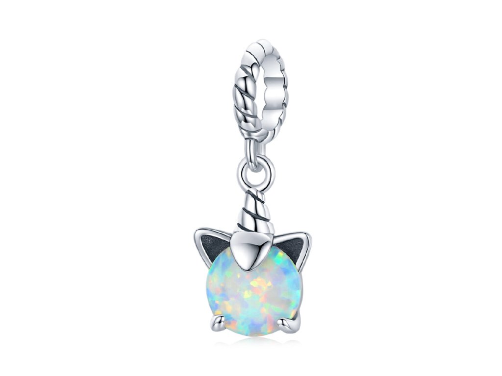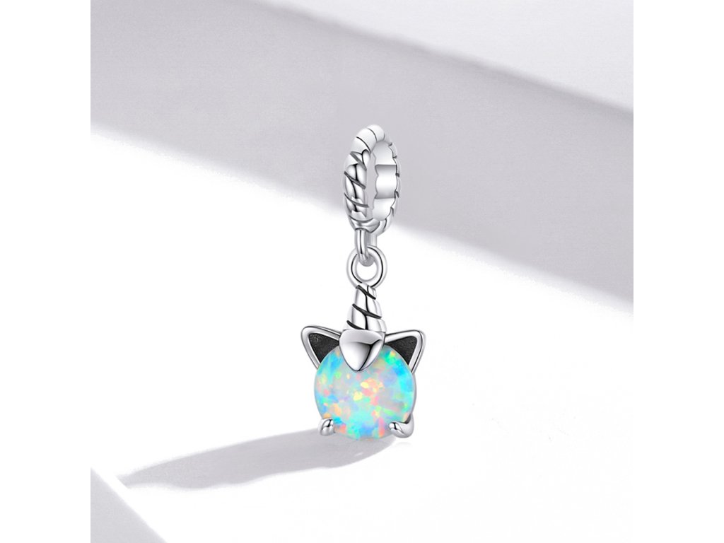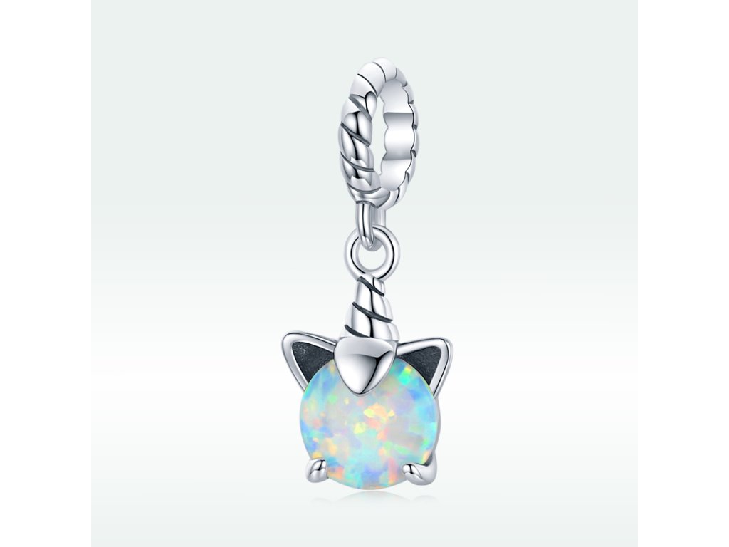 - Strieborný visiaci prívesok v dizajne kúzelného jednorožca zdobeného krásnym opálom. Originálny design prívesku, kvalitné spracovanie a materiál, ručne dohotovené.