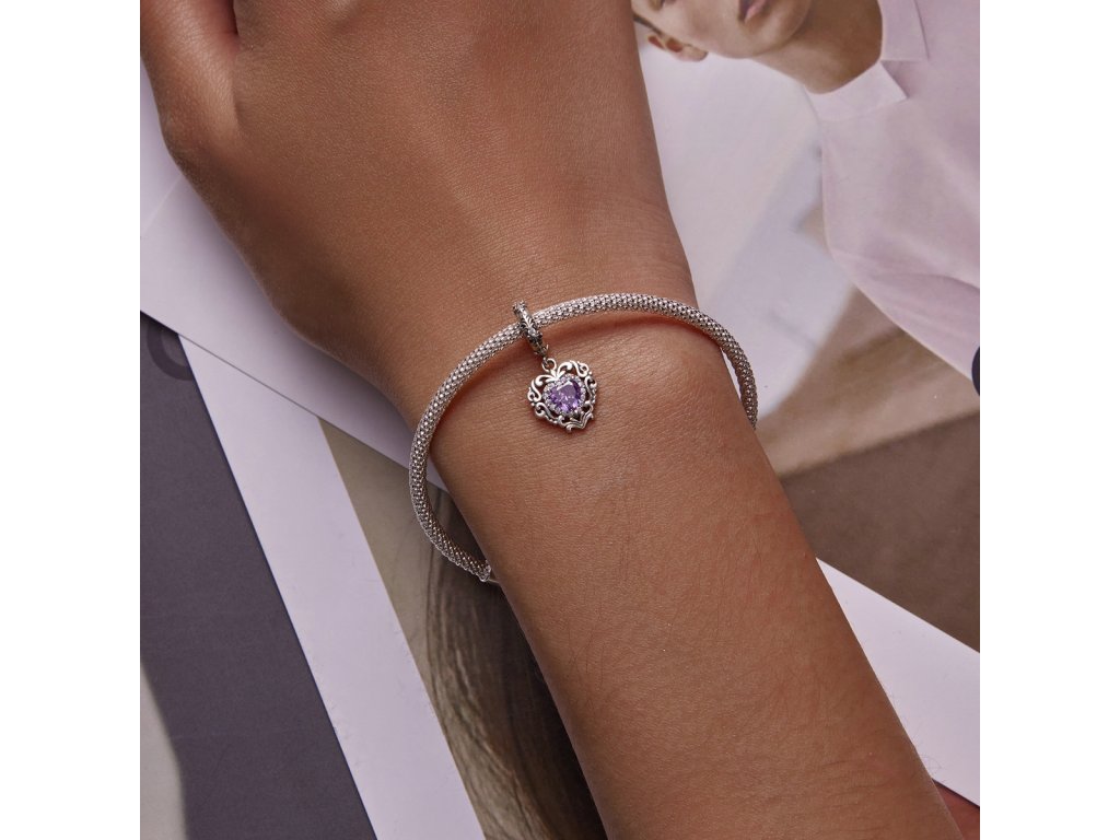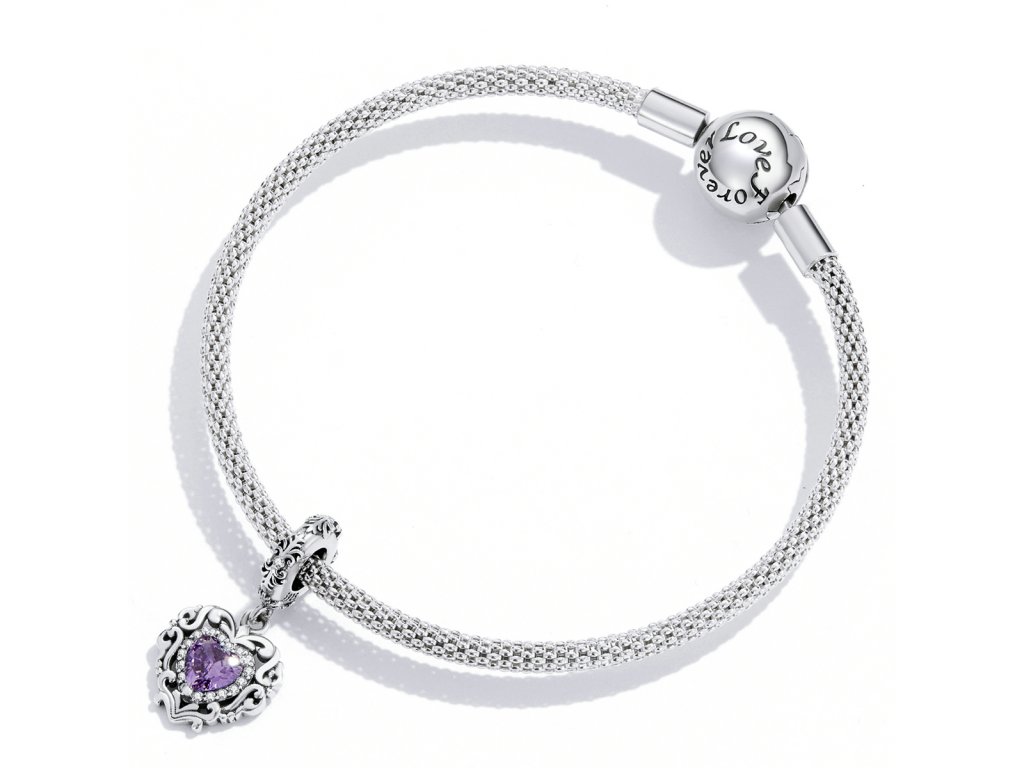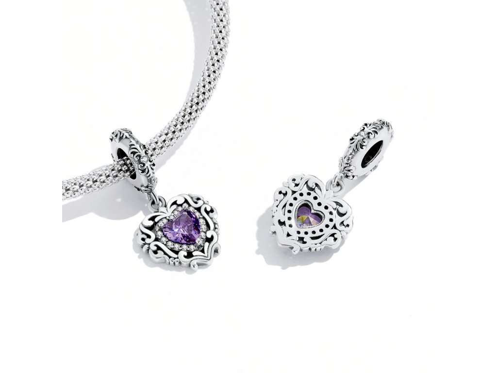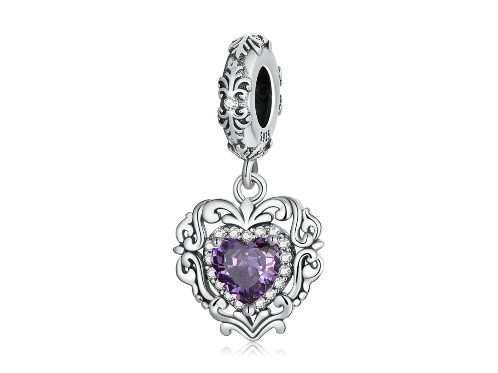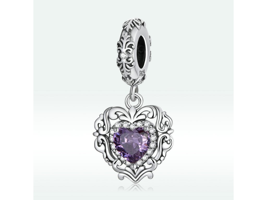 Royal Fashion strieborný prívesok Fialové brúsené srdce