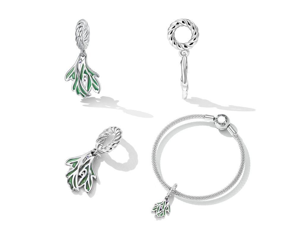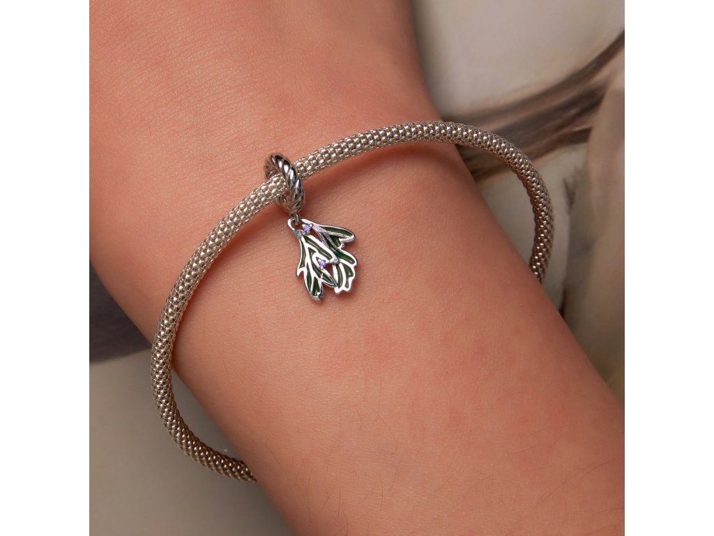 Royal Fashion strieborný prívesok Glazúrované lístky