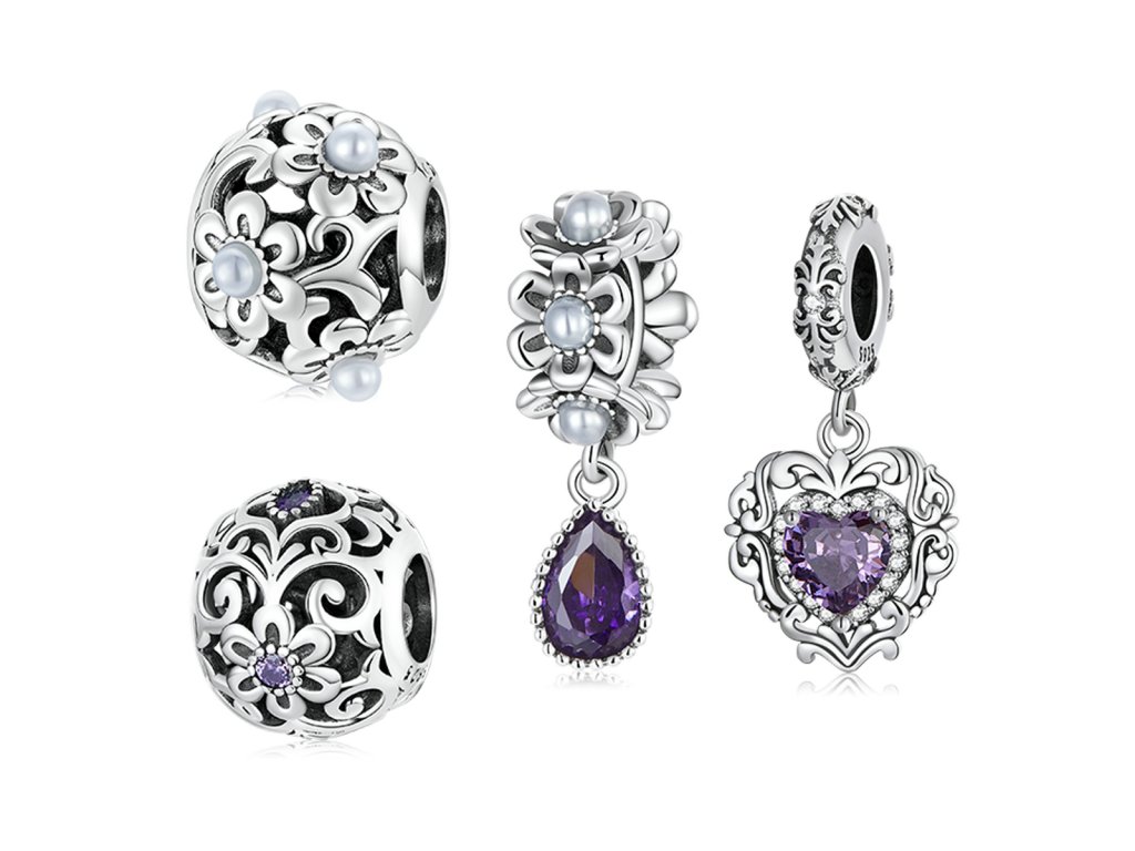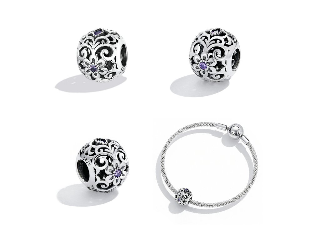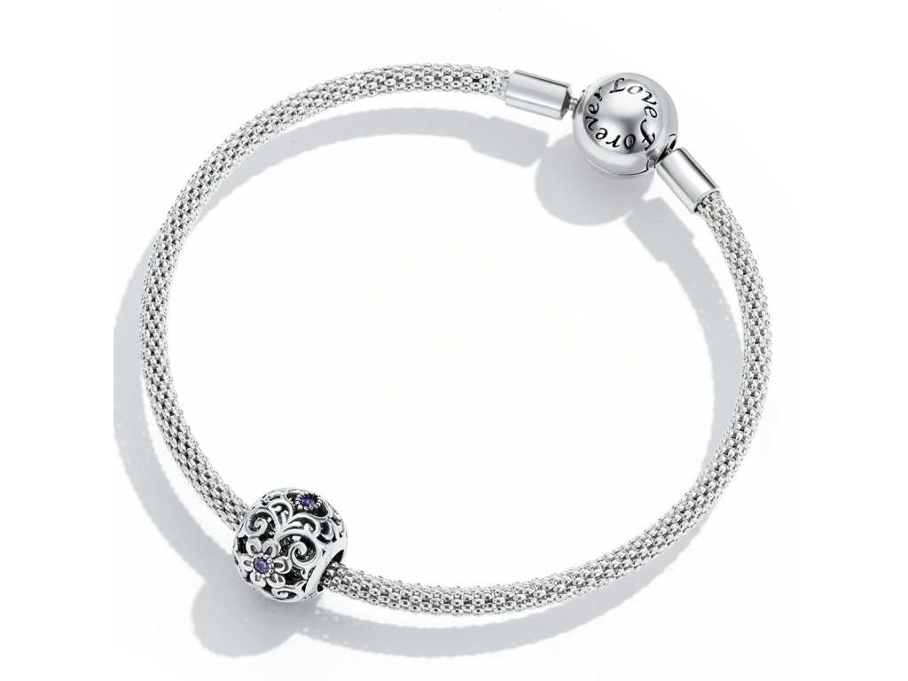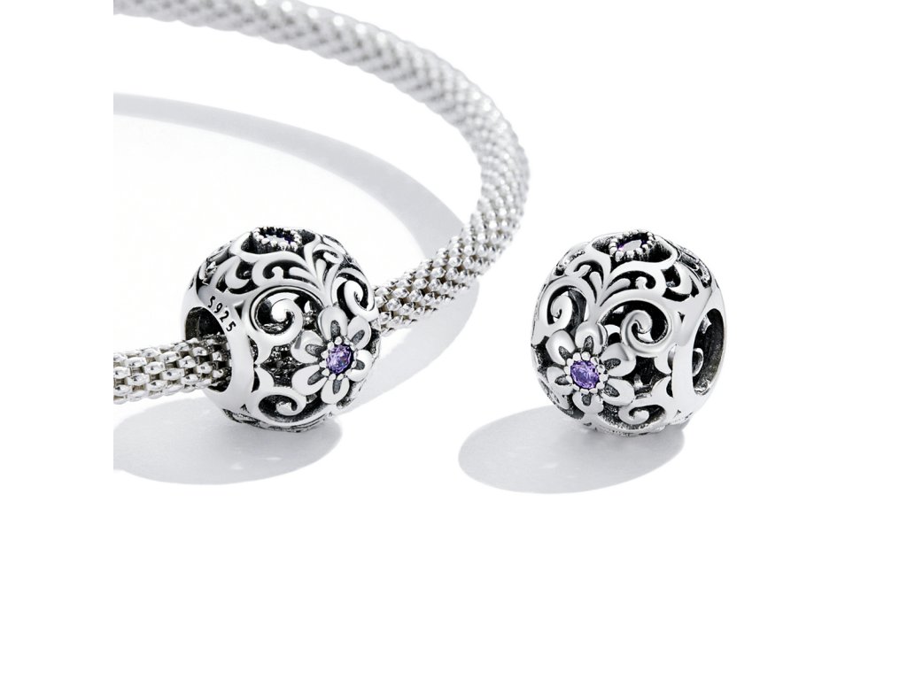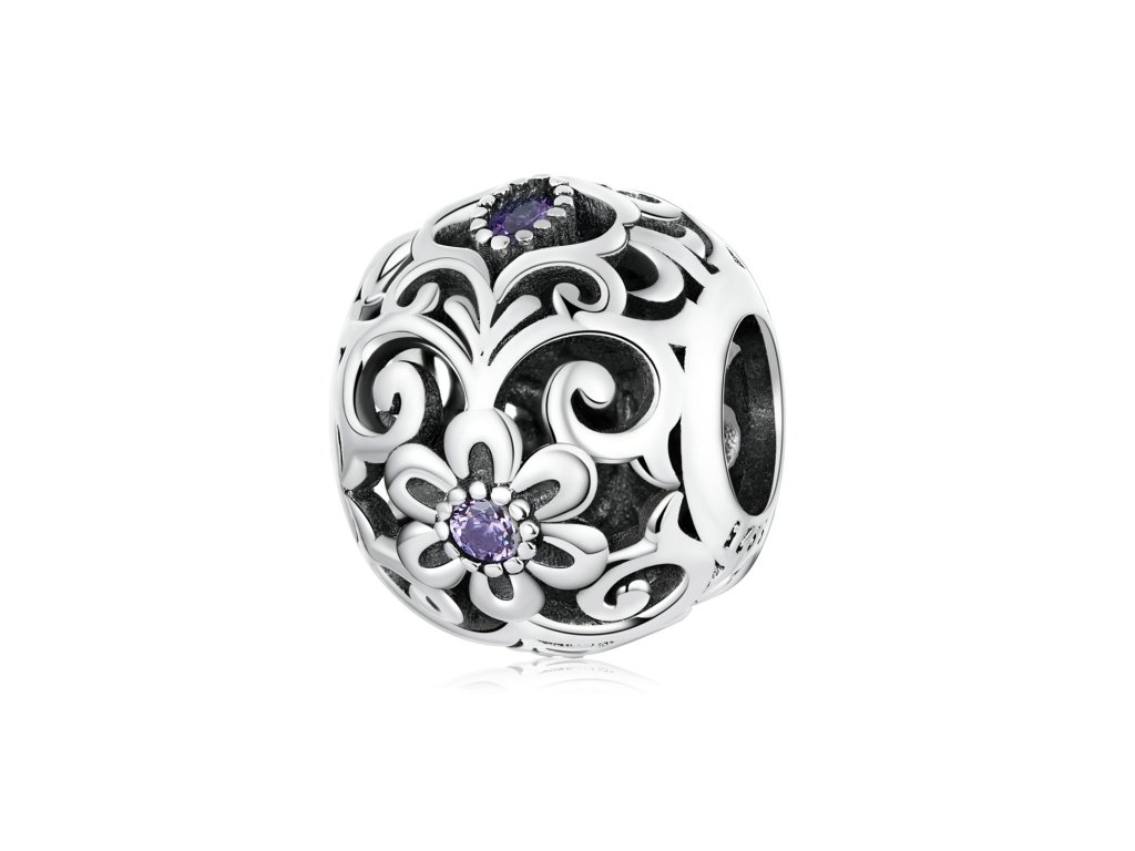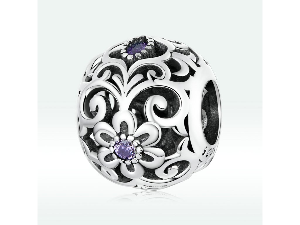 - Strieborný prívesok / korálik v dizajne kráľovskej záhrady zdobený fialovými kameňmi v podobe zirkónov. Originálny design prívesku, kvalitné spracovanie a materiál, ručne dohotovené.