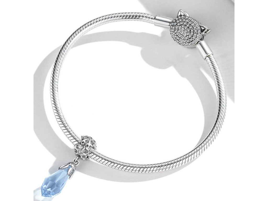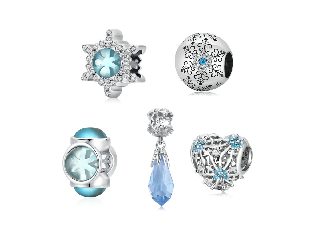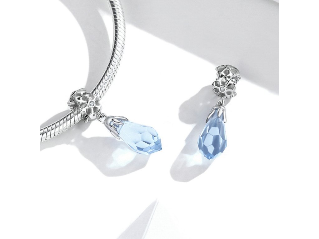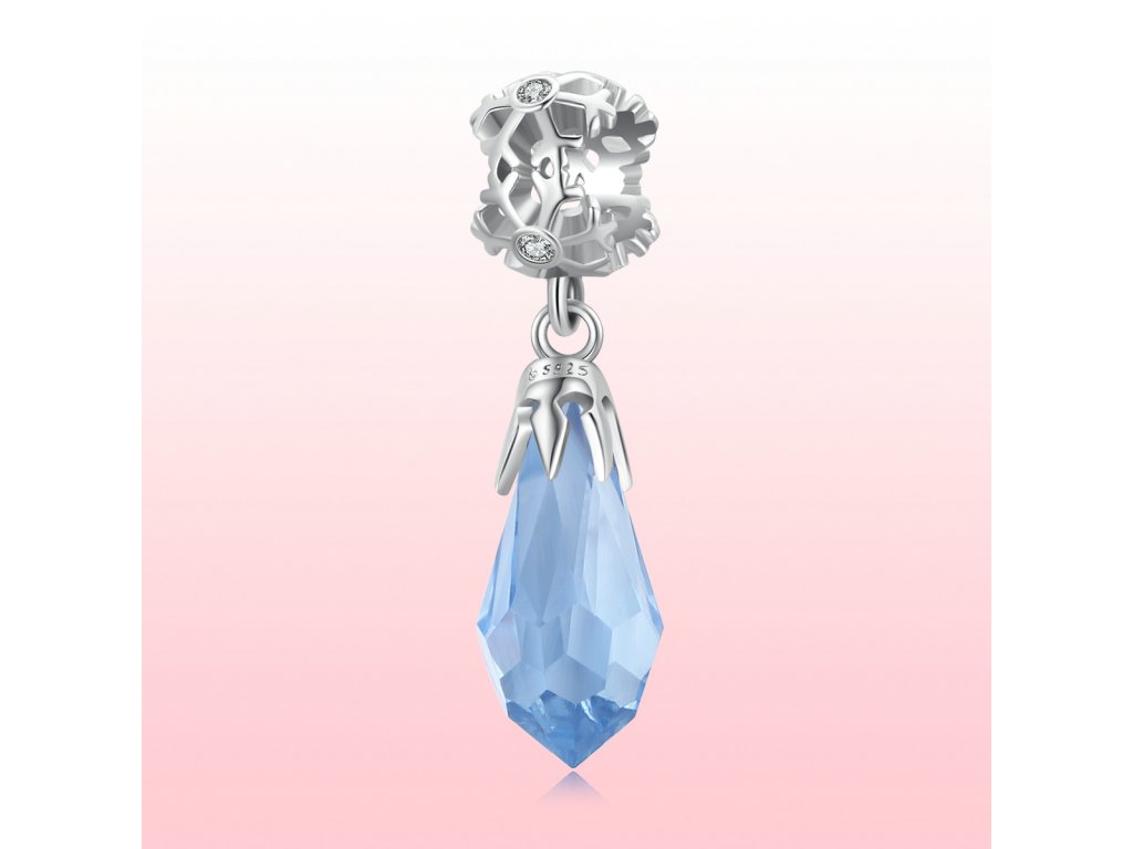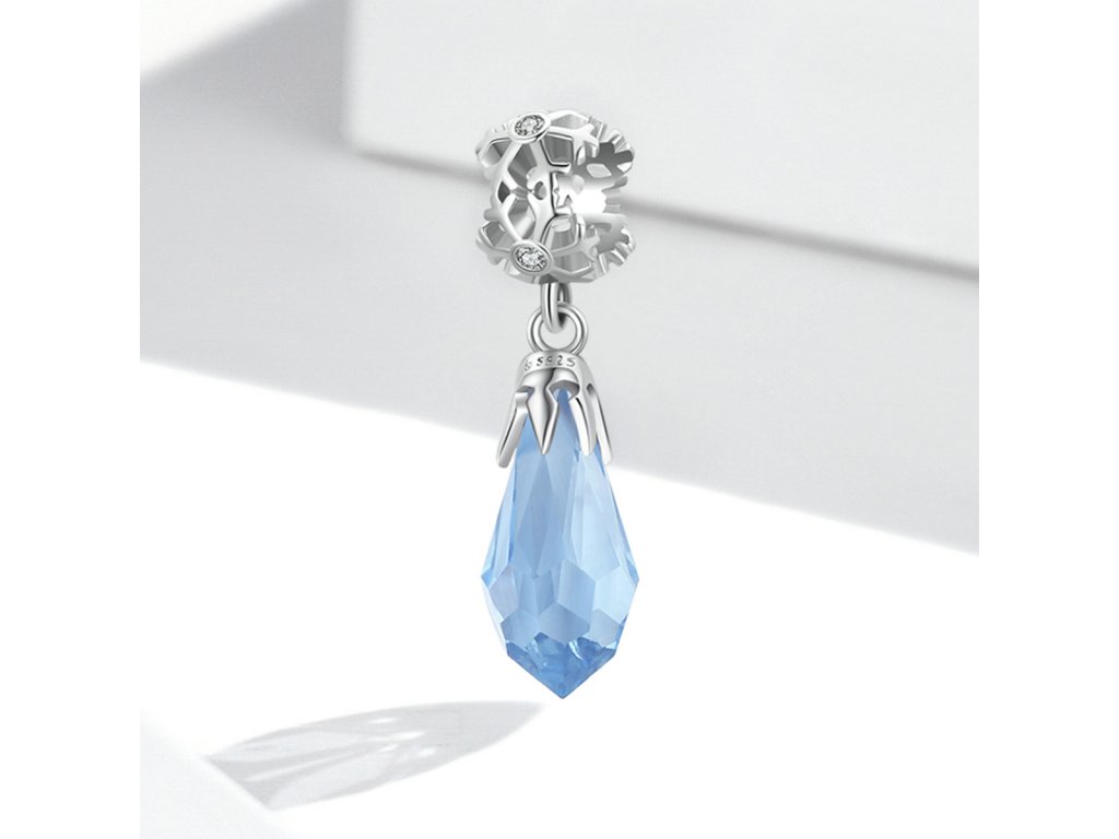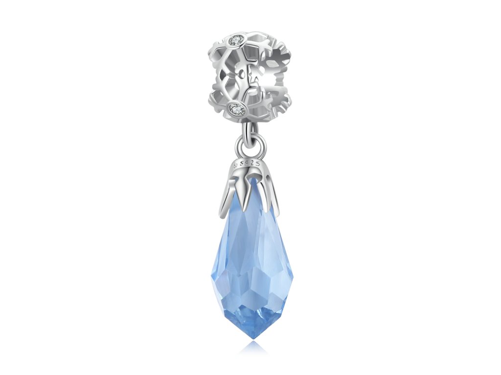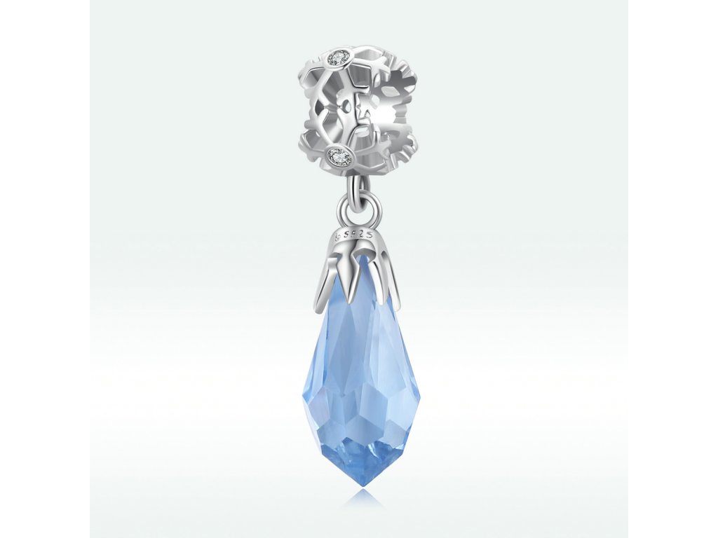 - Strieborný visiaci prívesok zdobený snehovými vločkami s čírymi trblietavými zirkónmi a veľkým brúseným modrým zirkónom v dizajne krištáľu. Originálny design prívesku, kvalitné spracovanie a materiál, ručne dohotovené.