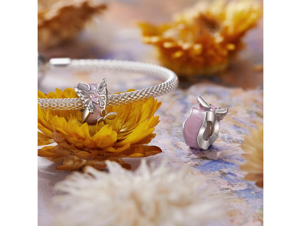- Strieborný prívesok v dizajne poletujúcich motýľov