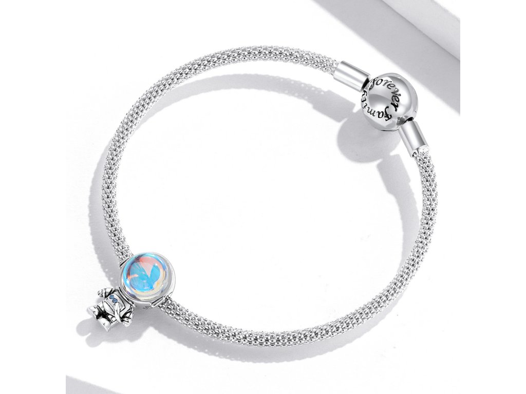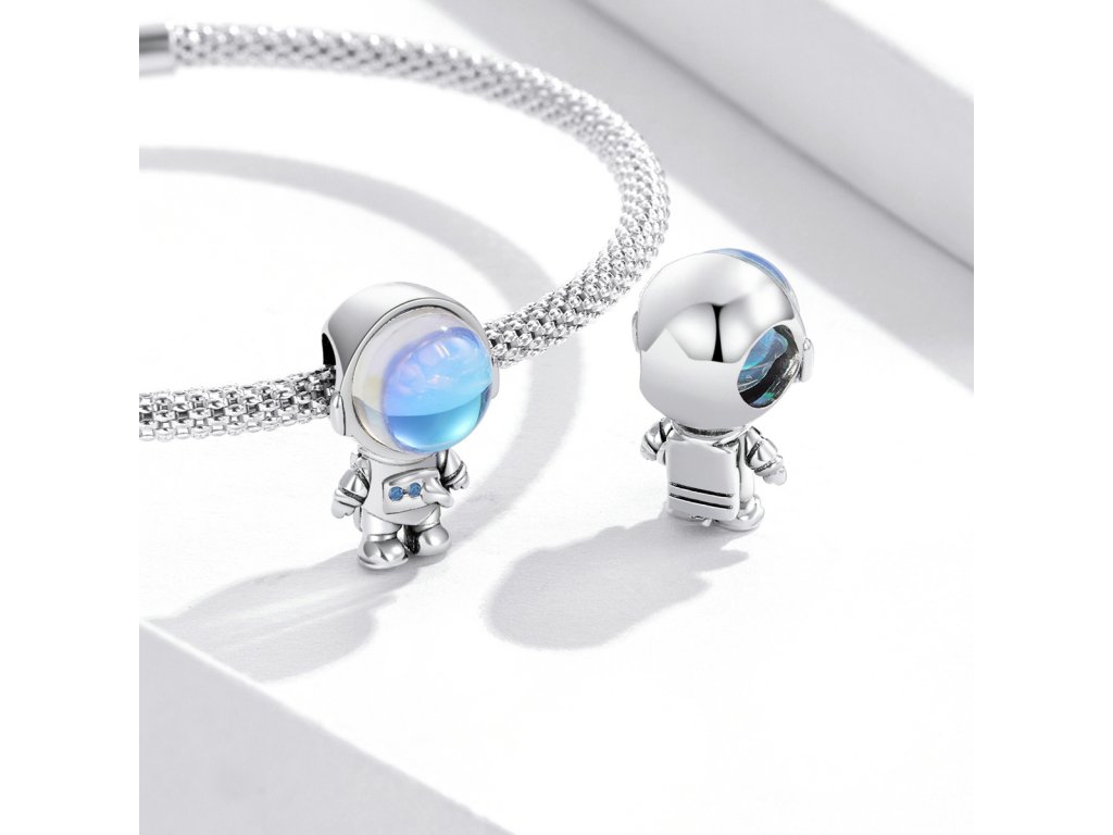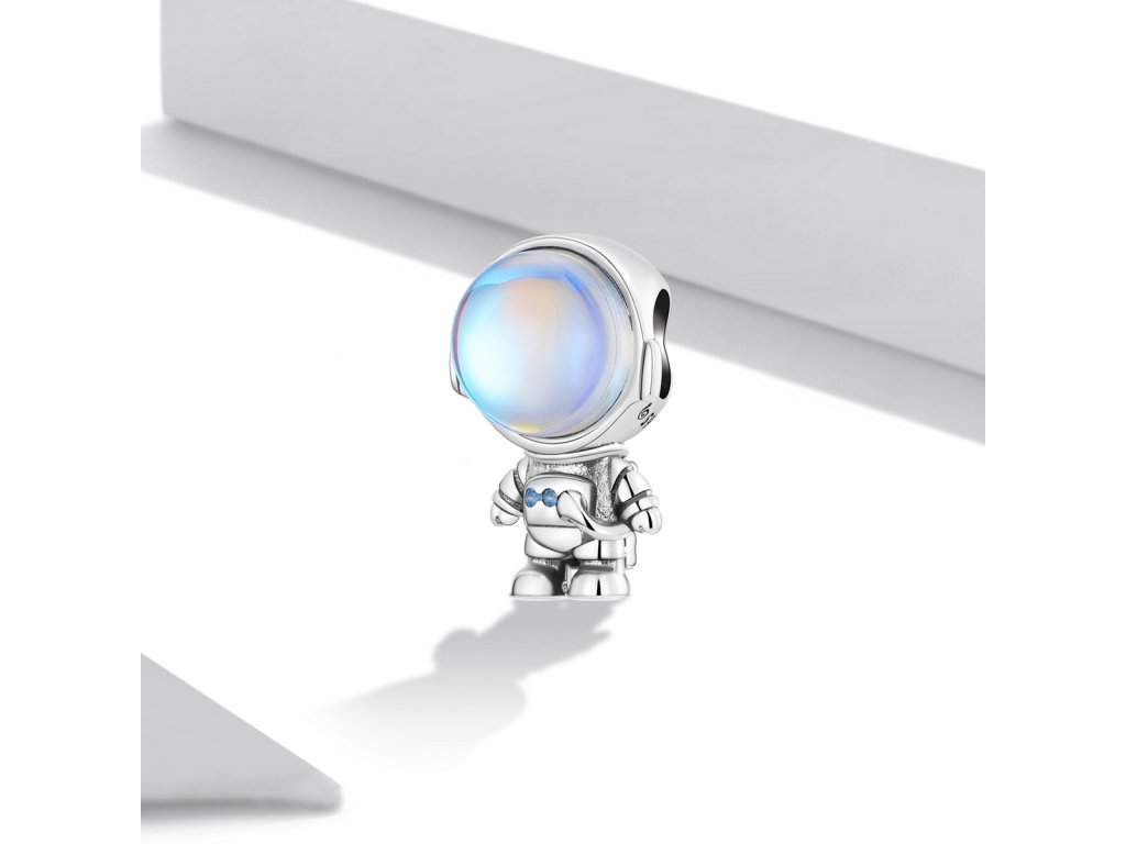 - Strieborný prívesok v dizajne roztomilého malého astronauta zdobeného syntetickým moonstonom - dúhovým mesačným kameňom, ktorý hádže kúzelné odlesky. Originálny design prívesku, kvalitné spracovanie a materiál, ručne dohotovené.