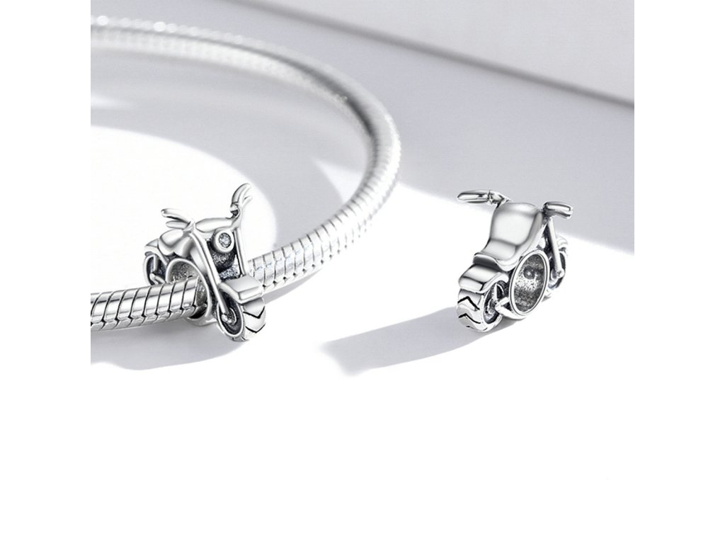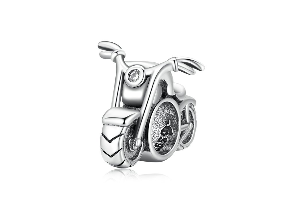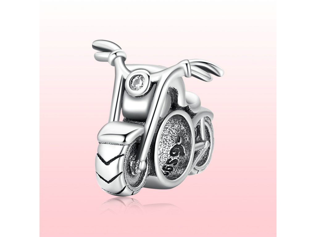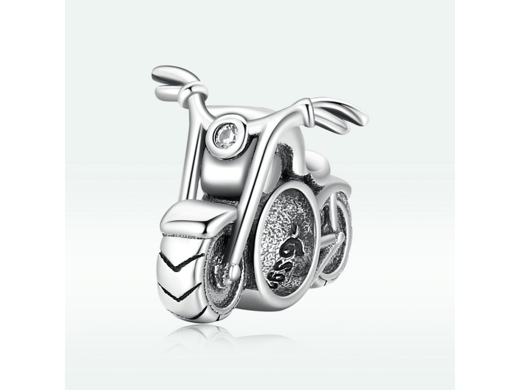 - Strieborný prepracovaný prívesok v dizajne motorky / motocykla zdobený čírym zirkónom. Originálny design prívesku, kvalitné spracovanie a materiál, ručne dohotovené.