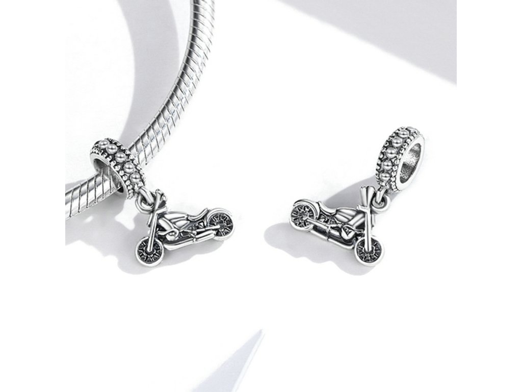 - Strieborný visiaci prepracovaný prívesok v dizajne motorky / motocykla. Originálny design prívesku, kvalitné spracovanie a materiál, ručne dohotovené.