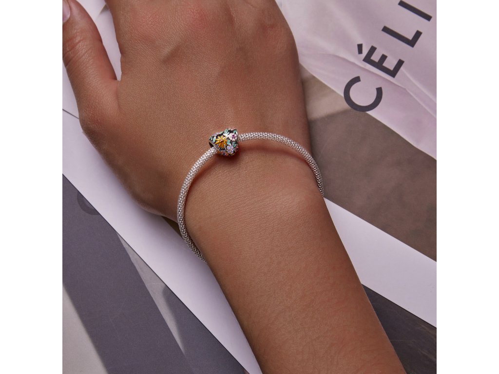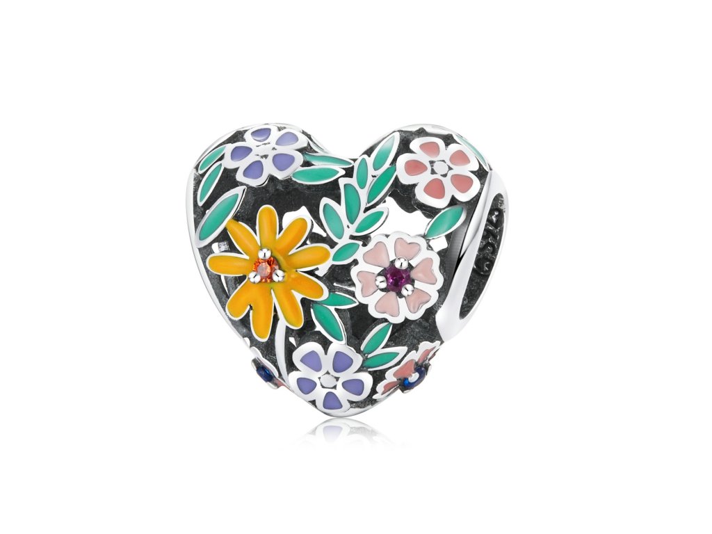 - Strieborný prívesok v tvare milovaného srdca obohateného kvetmi a lístkami zdobenými ručne nanášanou farebnou glazúrou. Originálny design prívesku, kvalitné spracovanie a materiál, ručne dohotovené.