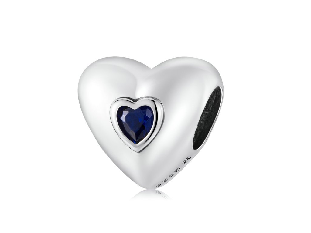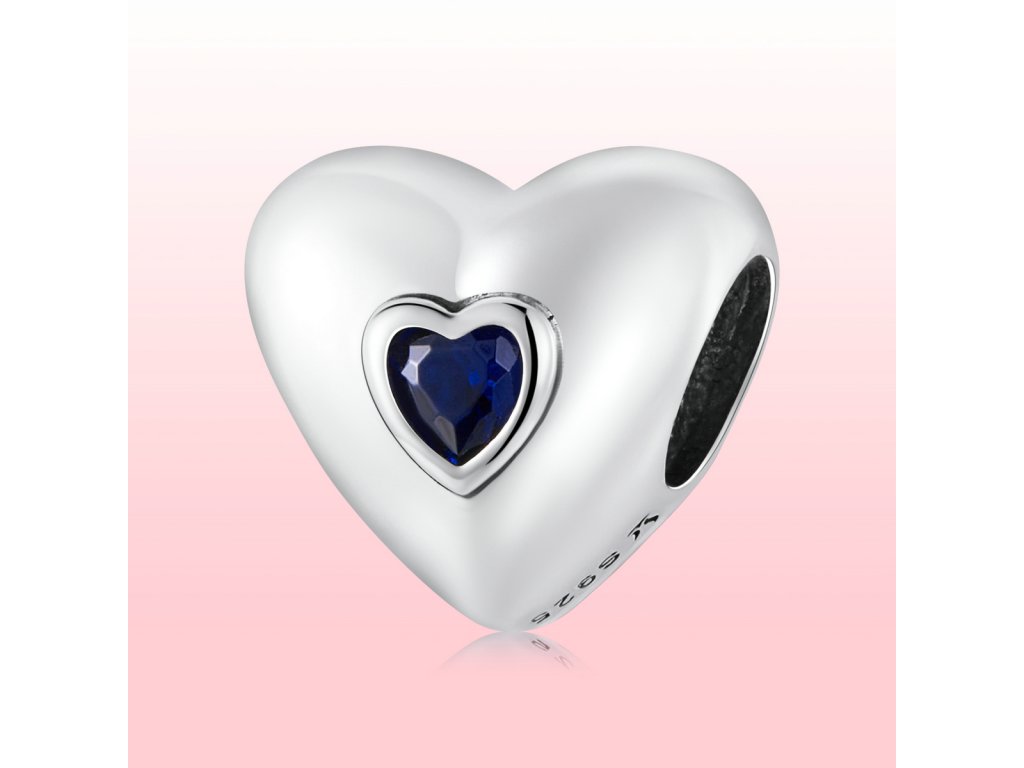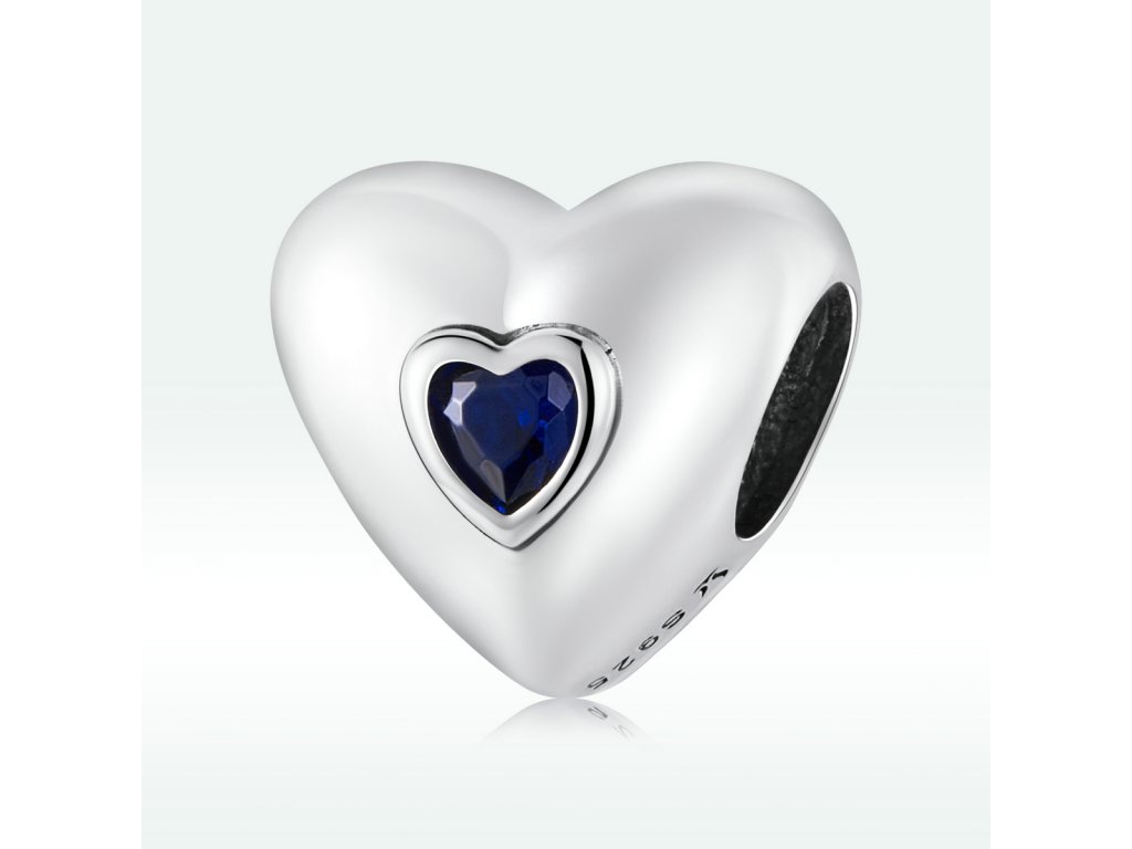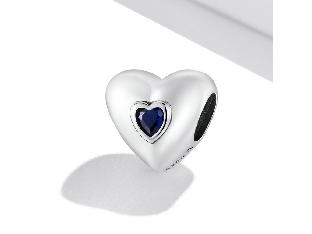 - Strieborný prívesok v tvare milovaného srdca zdobeného tmavomodrým brúseným kameňom v podobe zirkónu. Originálny design prívesku, kvalitné spracovanie a materiál, ručne dohotovené.