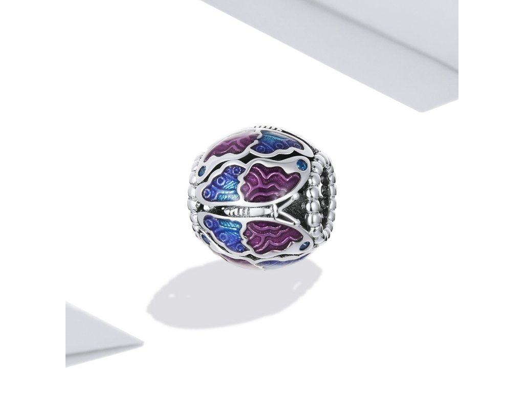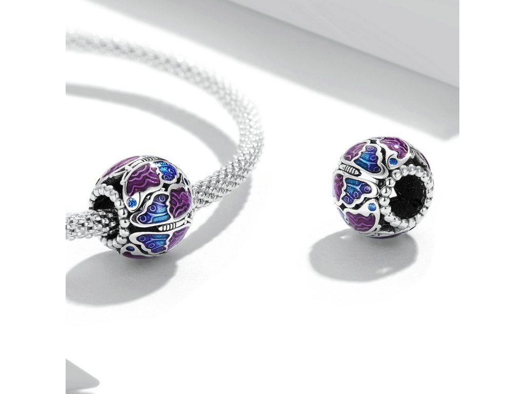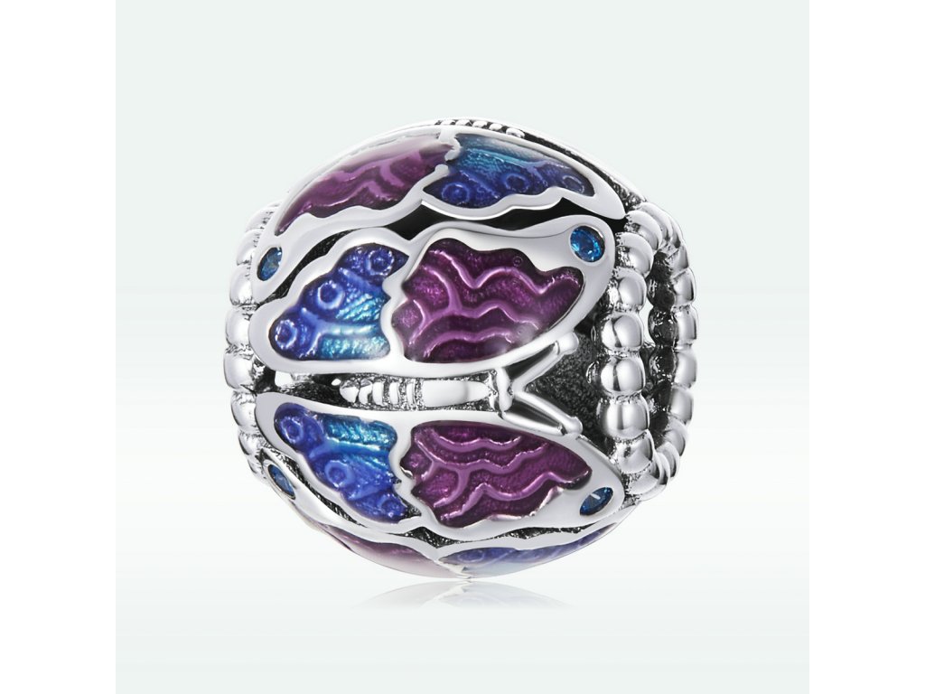 - Strieborný prívesok v dizajne krásnych motýľov zdobených ručne nanášanou fialovou a modrou glazúrou. Prívesok je tiež zdobený modrými trblietavými zirkónmi. Originálny design prívesku, kvalitné spracovanie a materiál, ručne dohotovené.