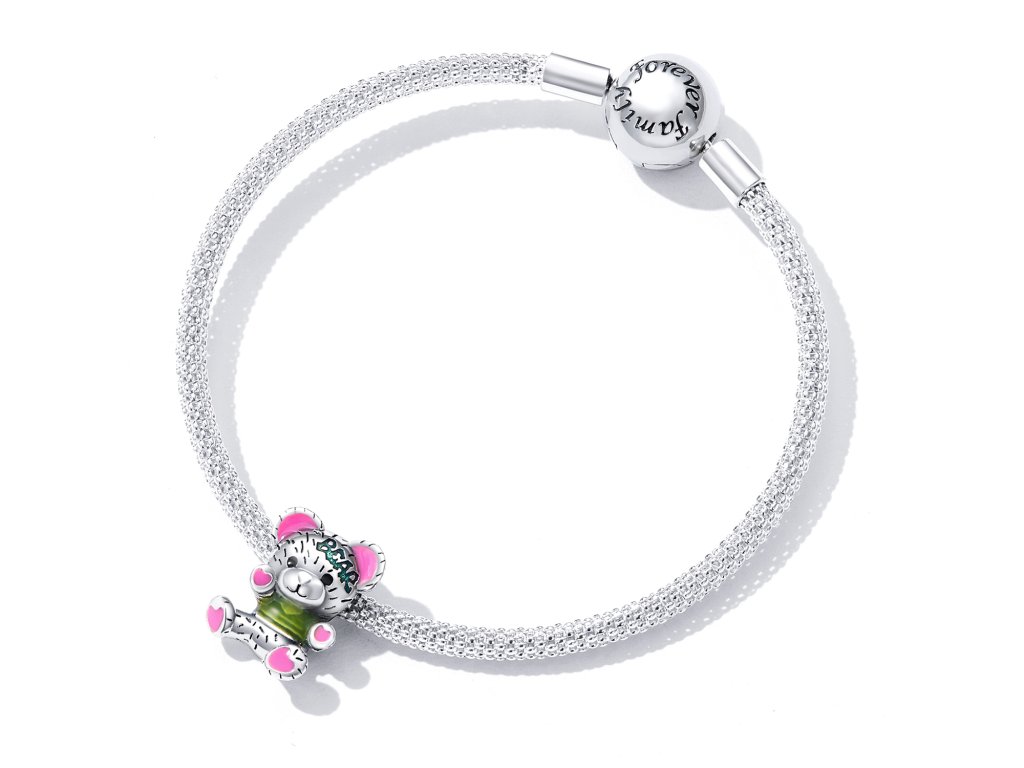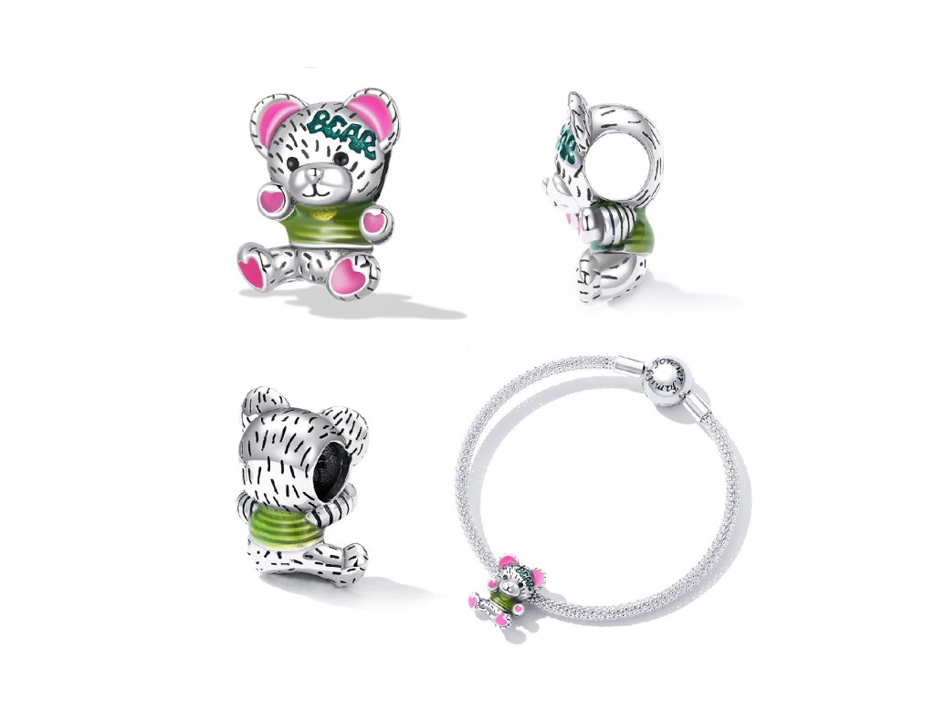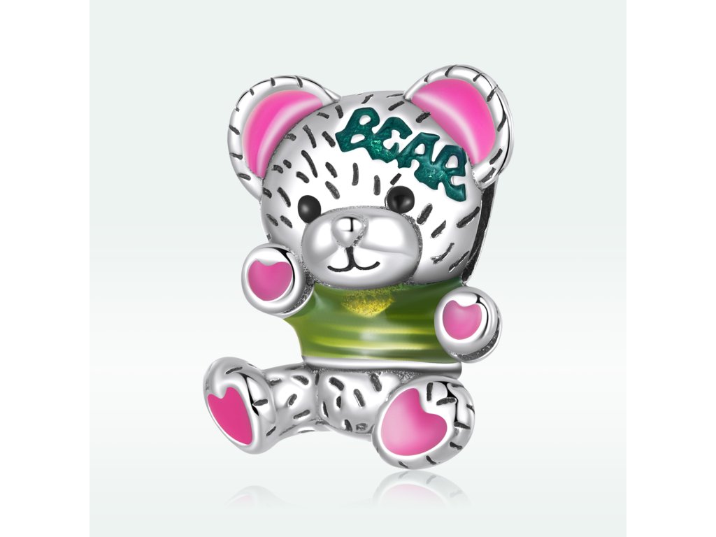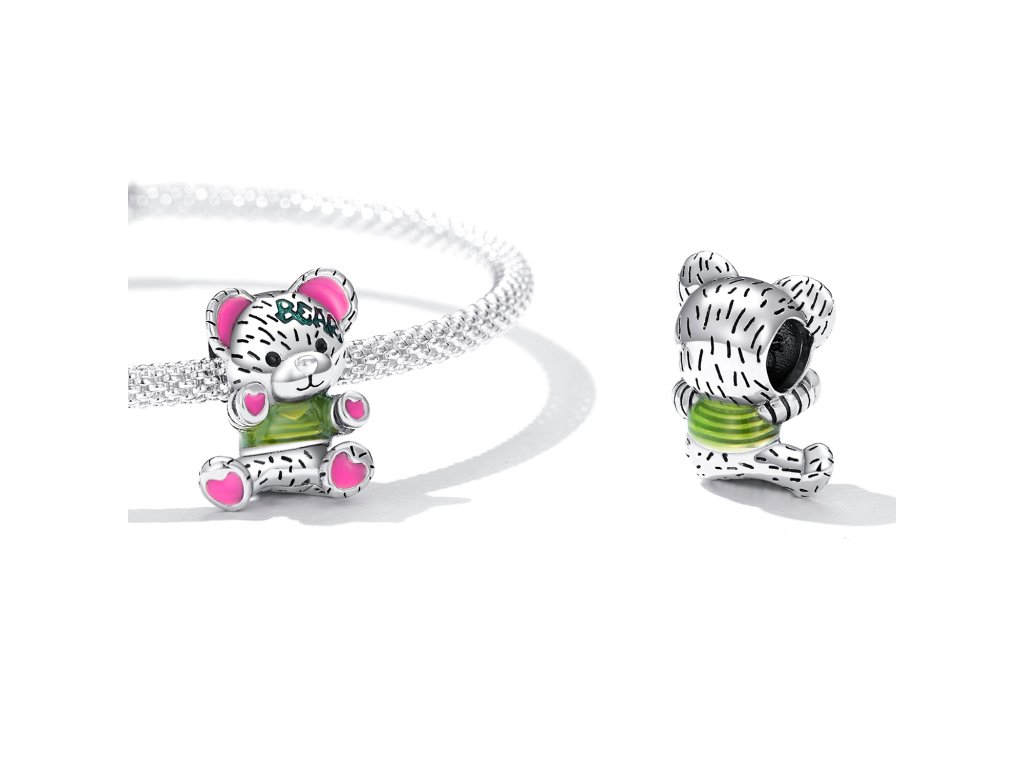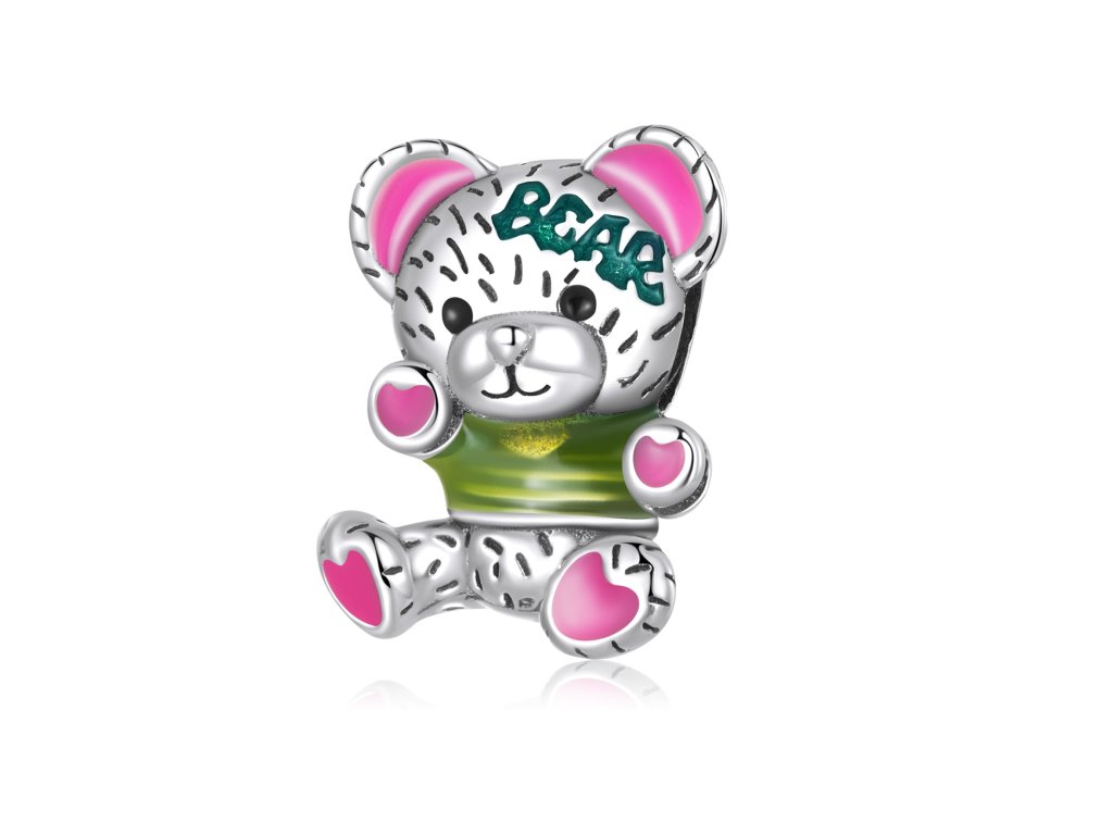 - Strieborný prívesok roztomilý medvedík s anglickým nápisom "bear" v preklade "medveď" zdobený ručne nanášanou farebnou glazúrou. Originálny design prívesku, kvalitné spracovanie a materiál, ručne dohotovené.