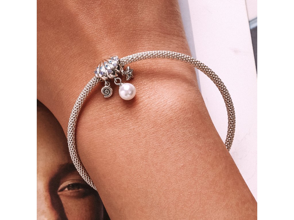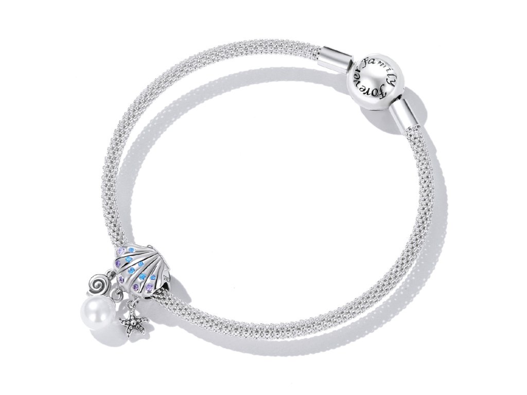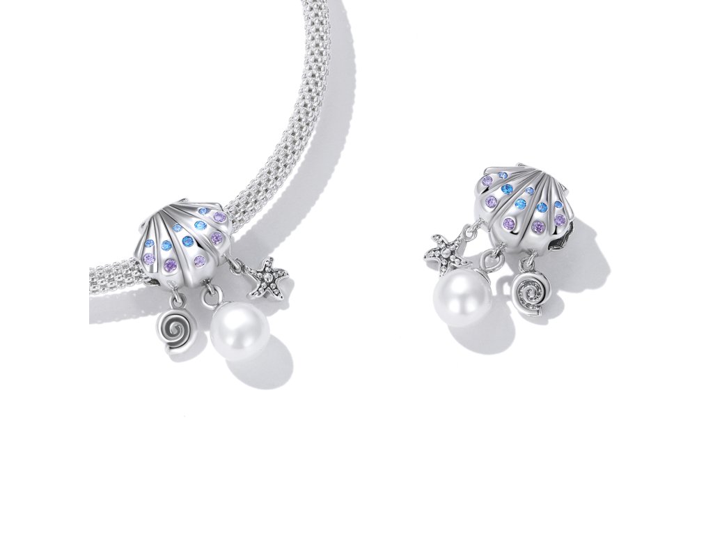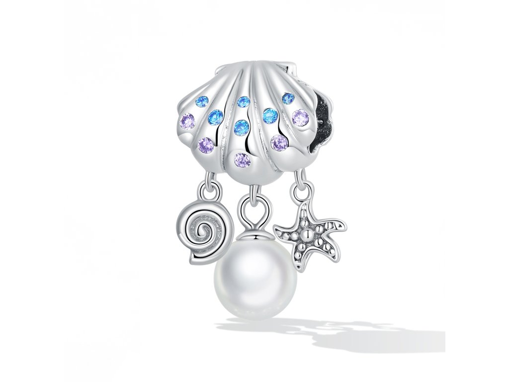 - Strieborný prívesok v dizajne pokladov mora tvorených z trblietavej mušle, slimáka, jemnej perly a hviezdice. Originálny design prívesku, kvalitné spracovanie a materiál, ručne dohotovené.