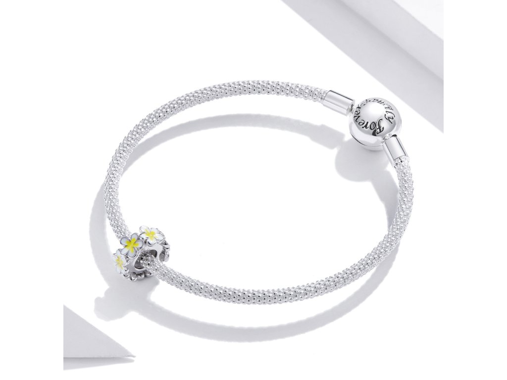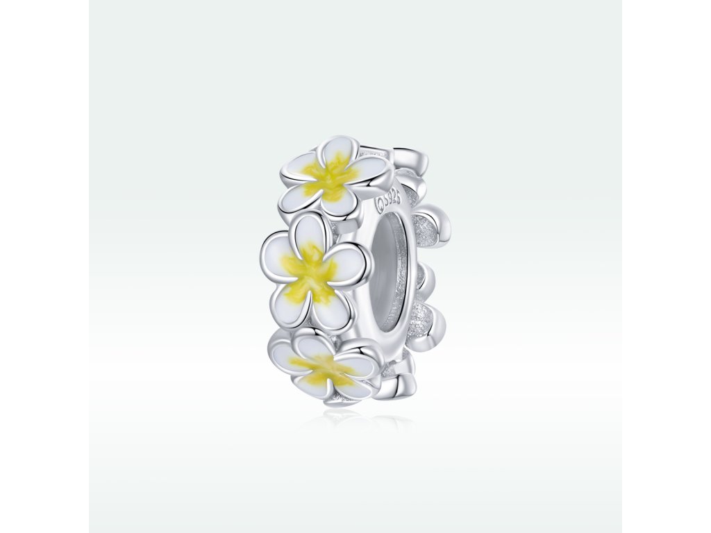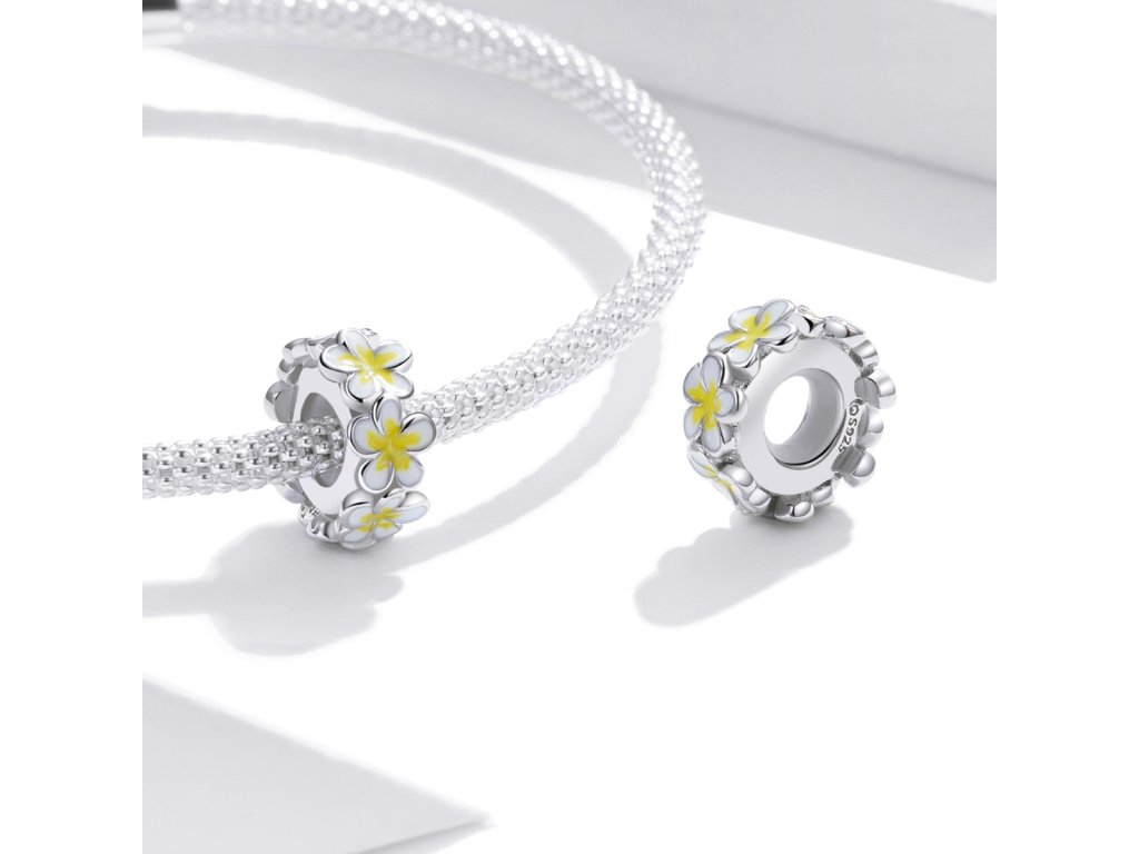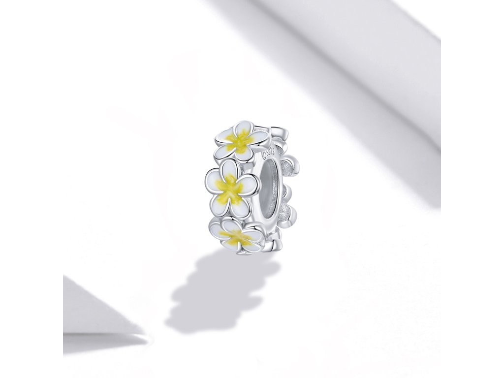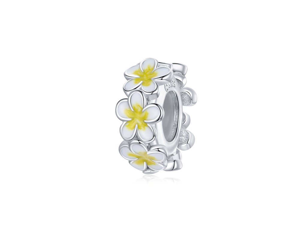 - Strieborný prívesok alebo spacer oddeľovač v dizajne Pole romantických kvetín zdobených žltou a bielou glazúrou. Originálny design prívesku, kvalitné spracovanie a materiál, ručne dohotovené.