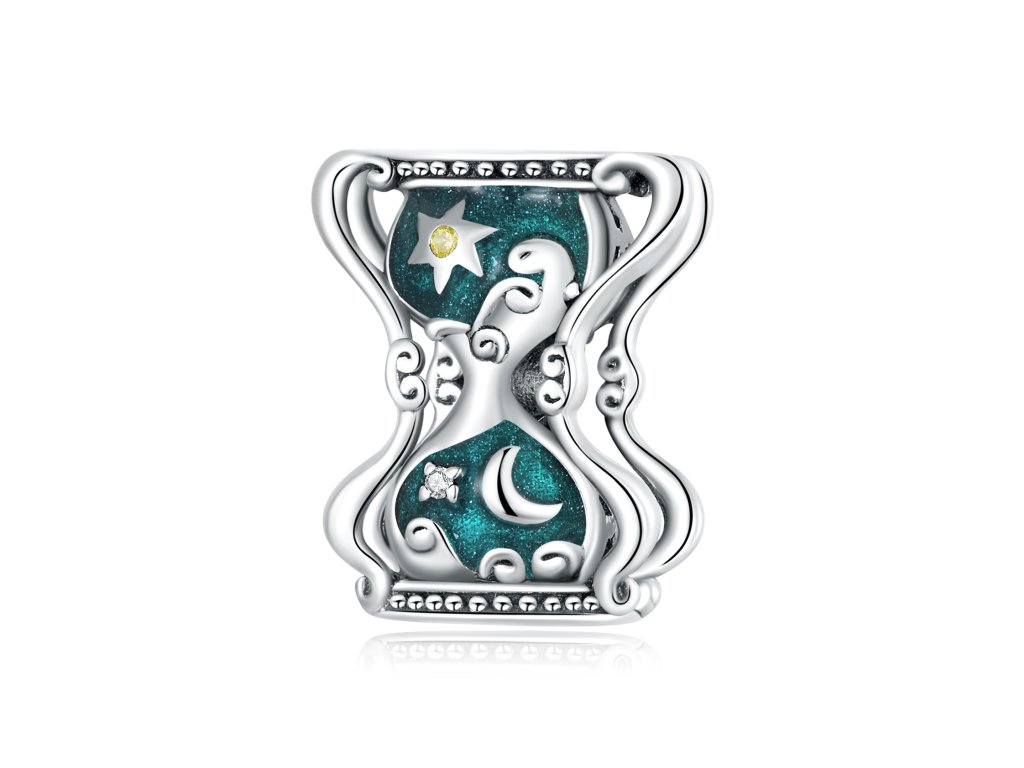- Strieborný prívesok v dizajne presýpacích hodín zdobených ručne nanášanou trblietavou glazúrou a žltými zirkónmi. Originálny design prívesku, kvalitné spracovanie a materiál, ručne dohotovené.