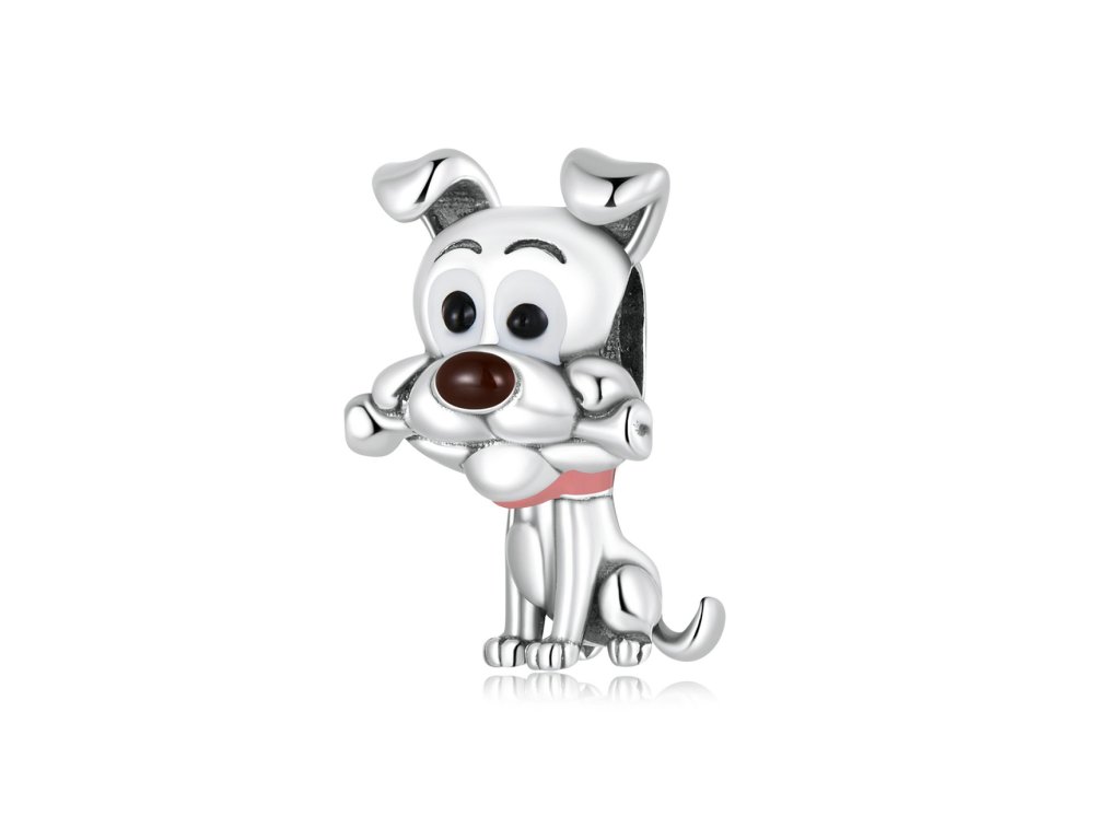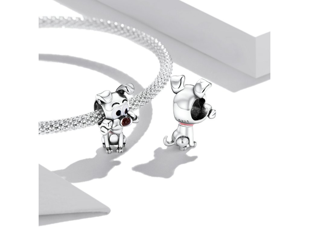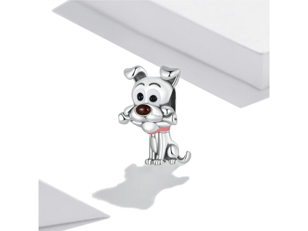 - Strieborný prívesok v dizajne hravého psíka s kockou zdobeného ručne nanášanou farebnou glazúrou. Originálny design prívesku, kvalitné spracovanie a materiál, ručne dohotovené.