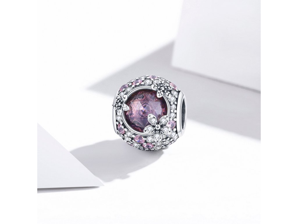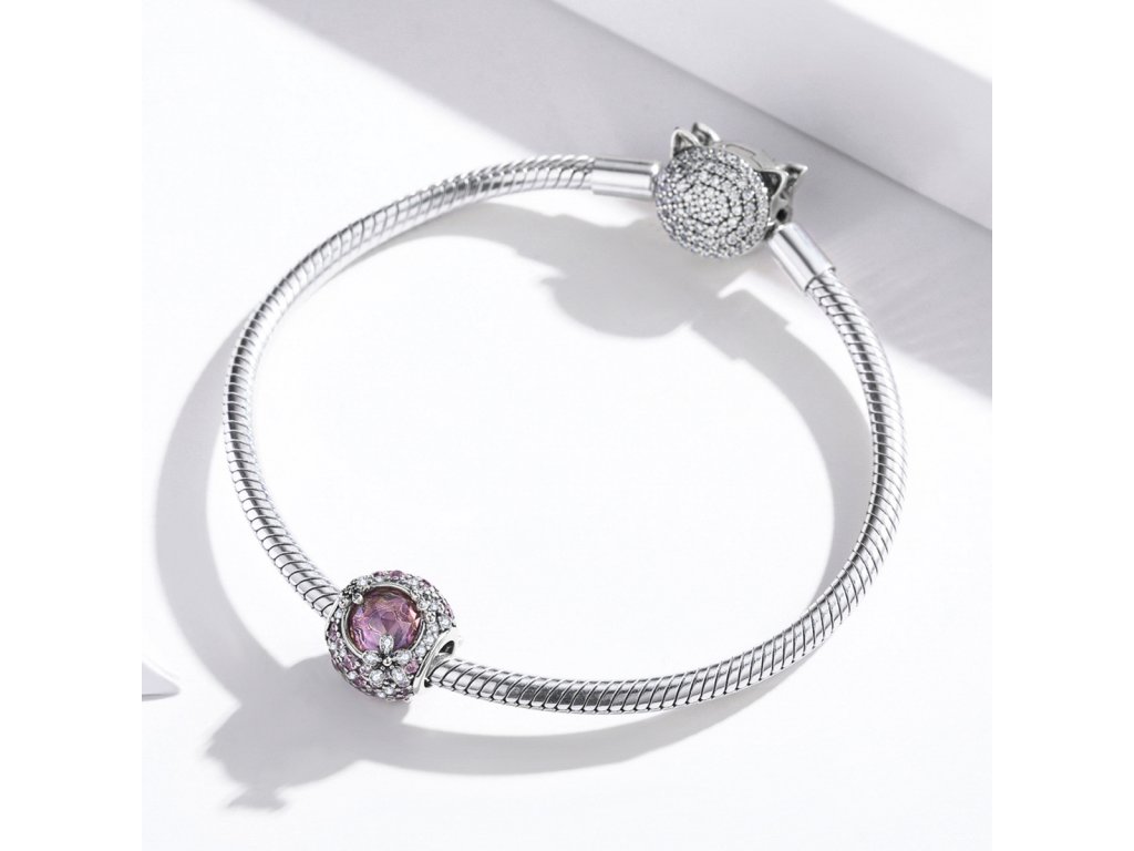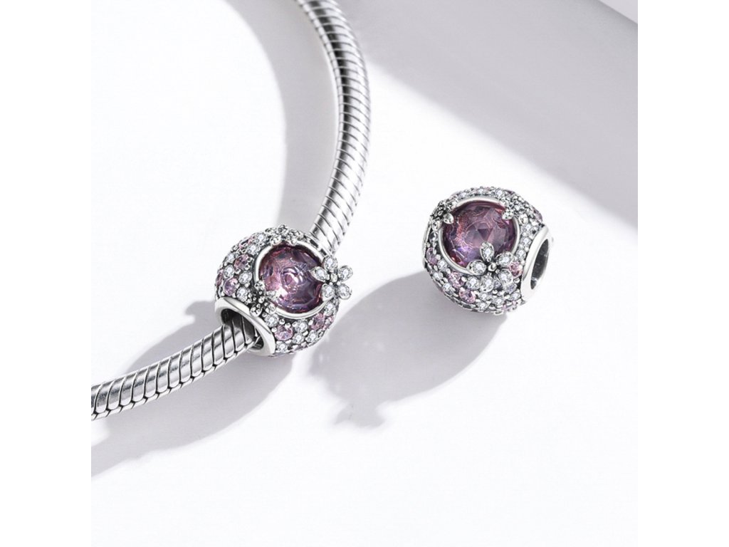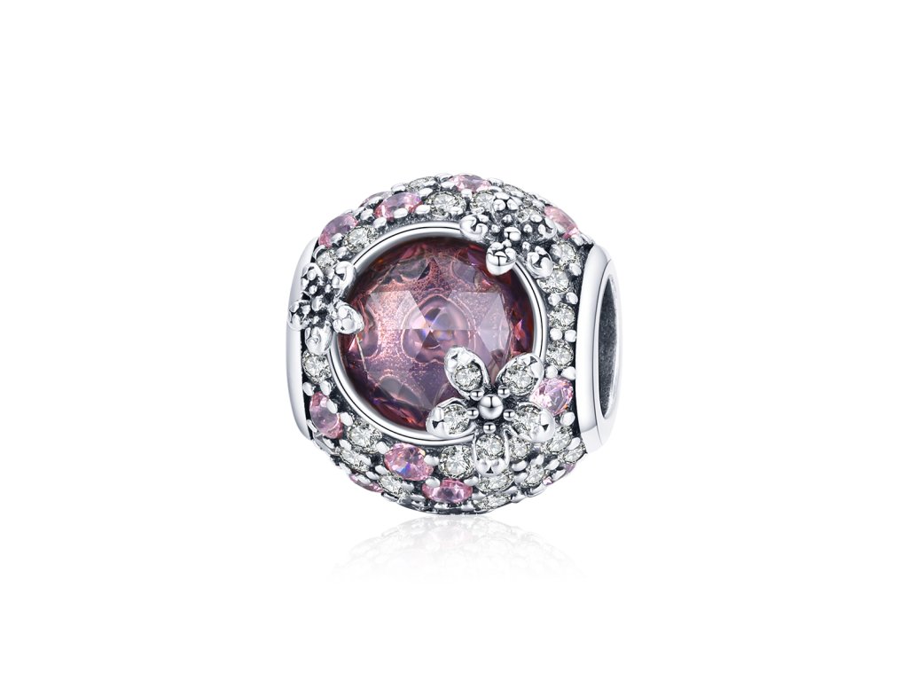 - Strieborný prívesok / korálik na náramok v dizajne romantických čerešňových kvetov zdobených čírymi a ružovými zirkónmi. Originálny design prívesku, kvalitné spracovanie a materiál, ručne dohotovené.