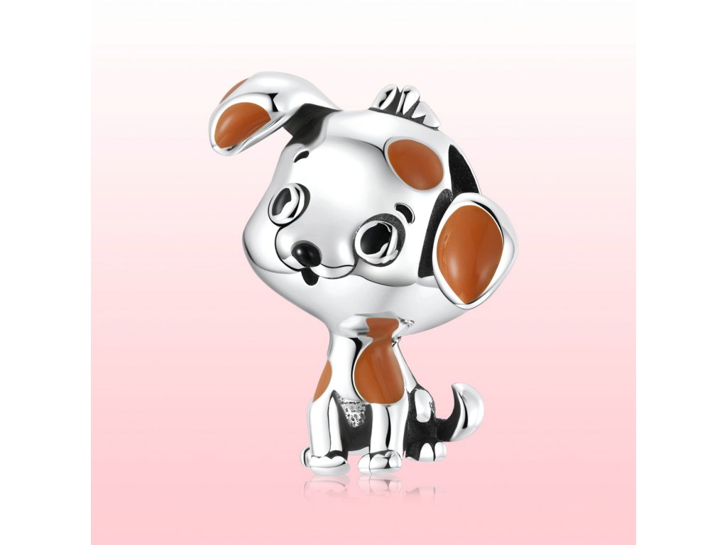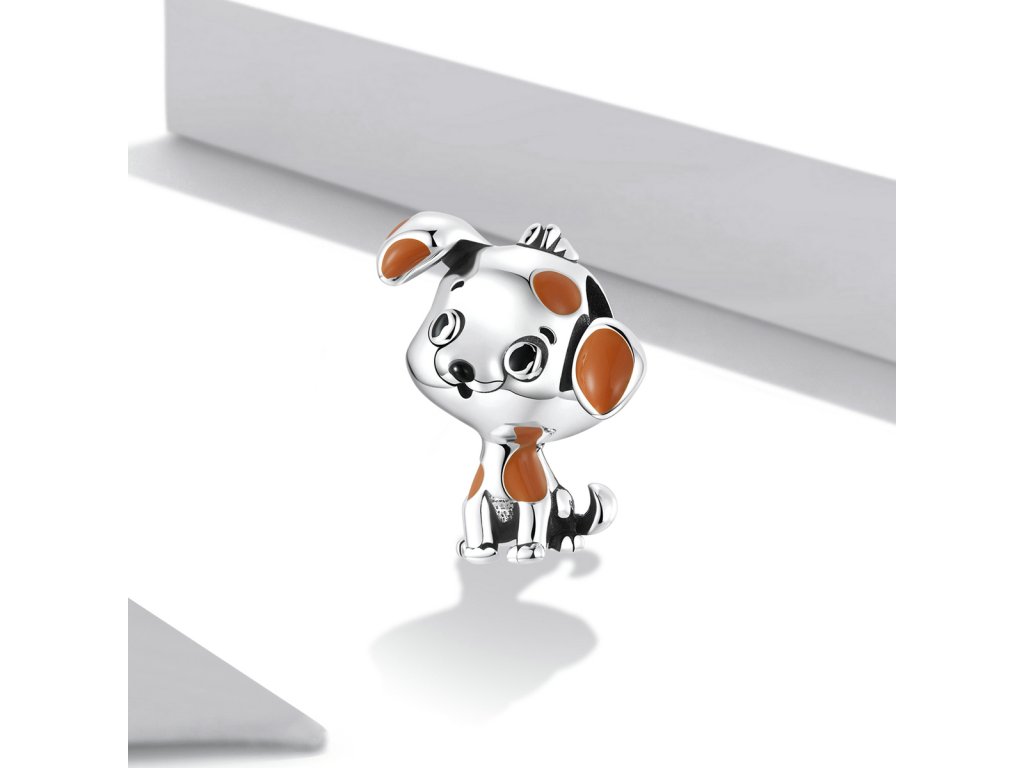 - Strieborný prívesok v dizajne roztomilého psíka zdobeného ručne nanášanou hnedou glazúrou. Originálny design prívesku, kvalitné spracovanie a materiál, ručne dohotovené.