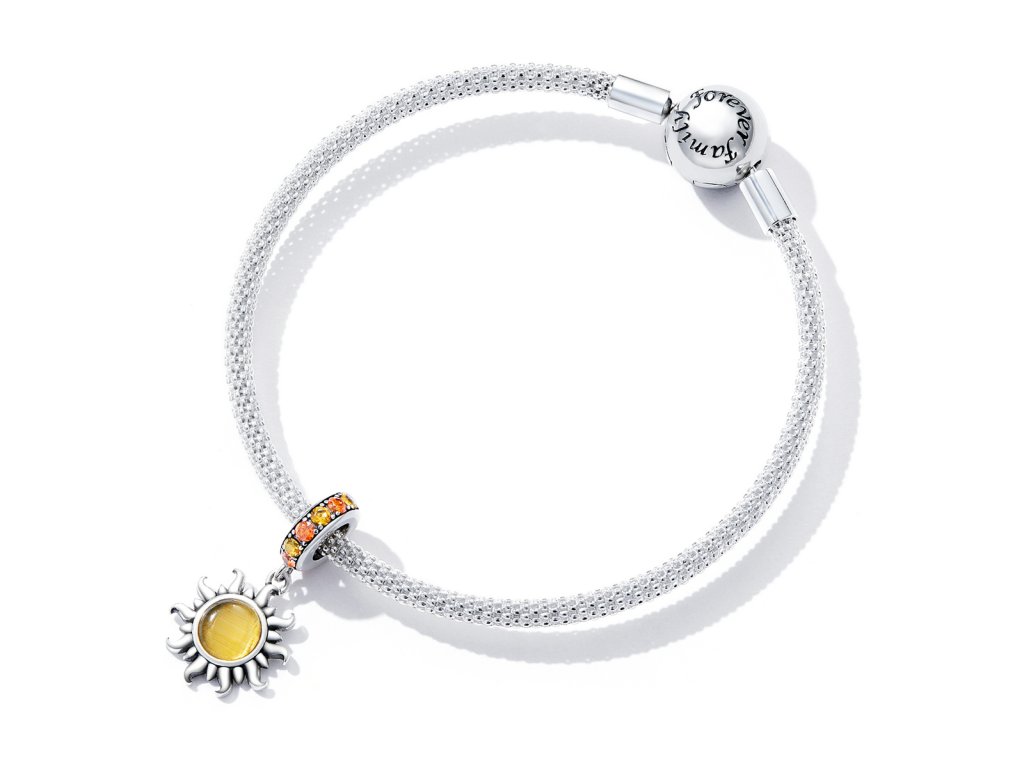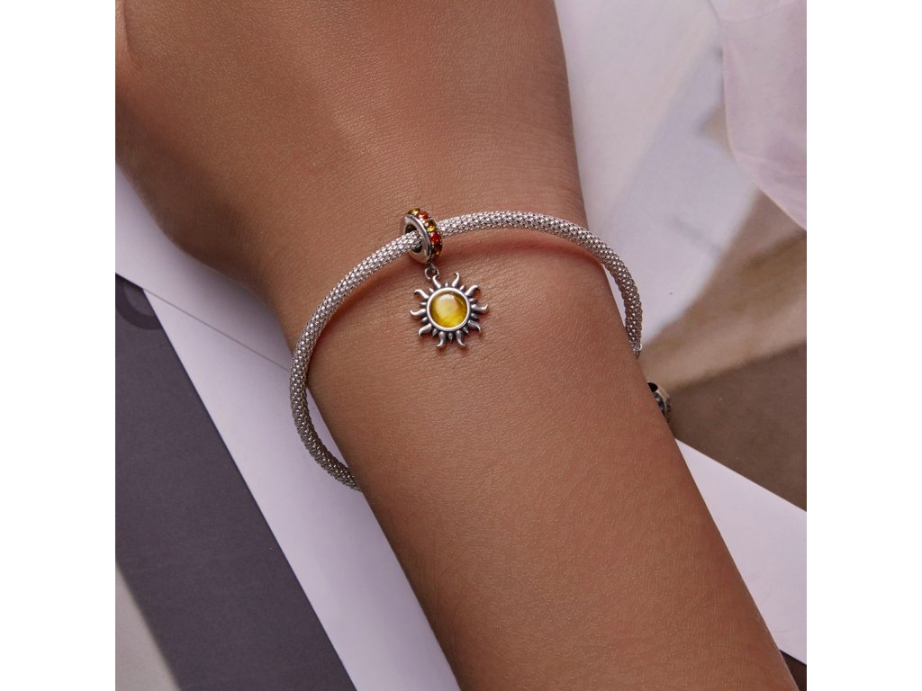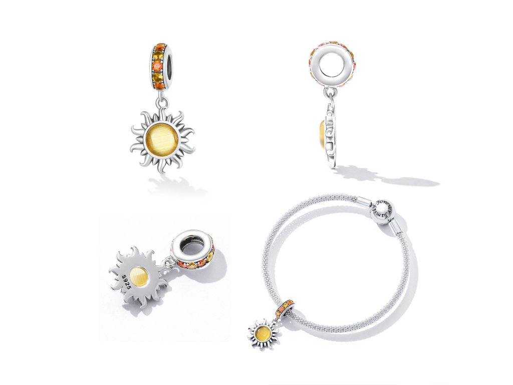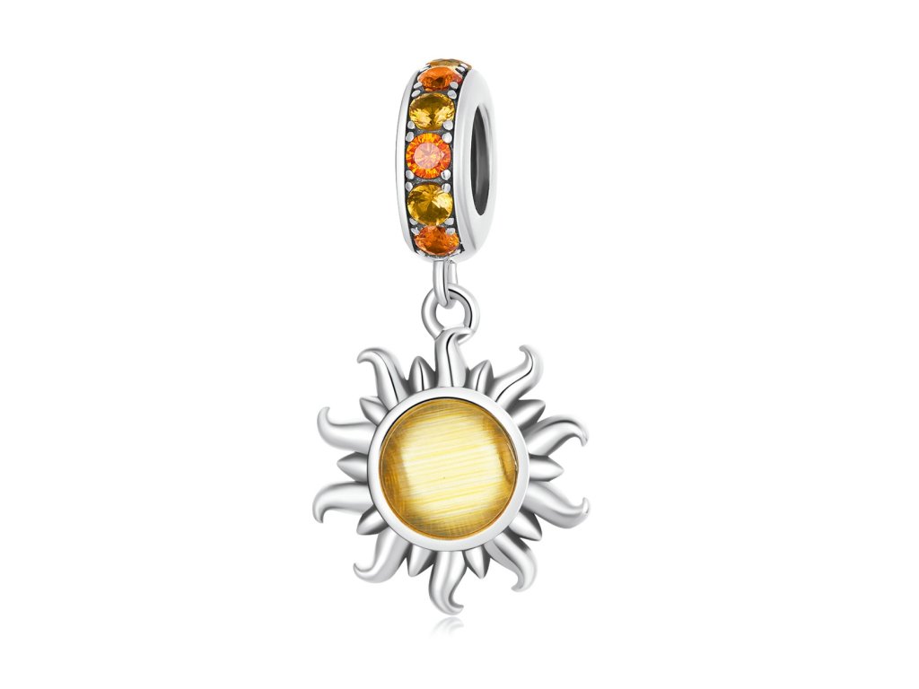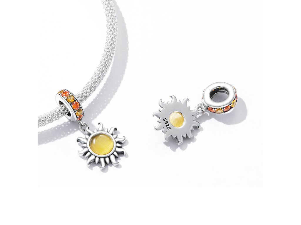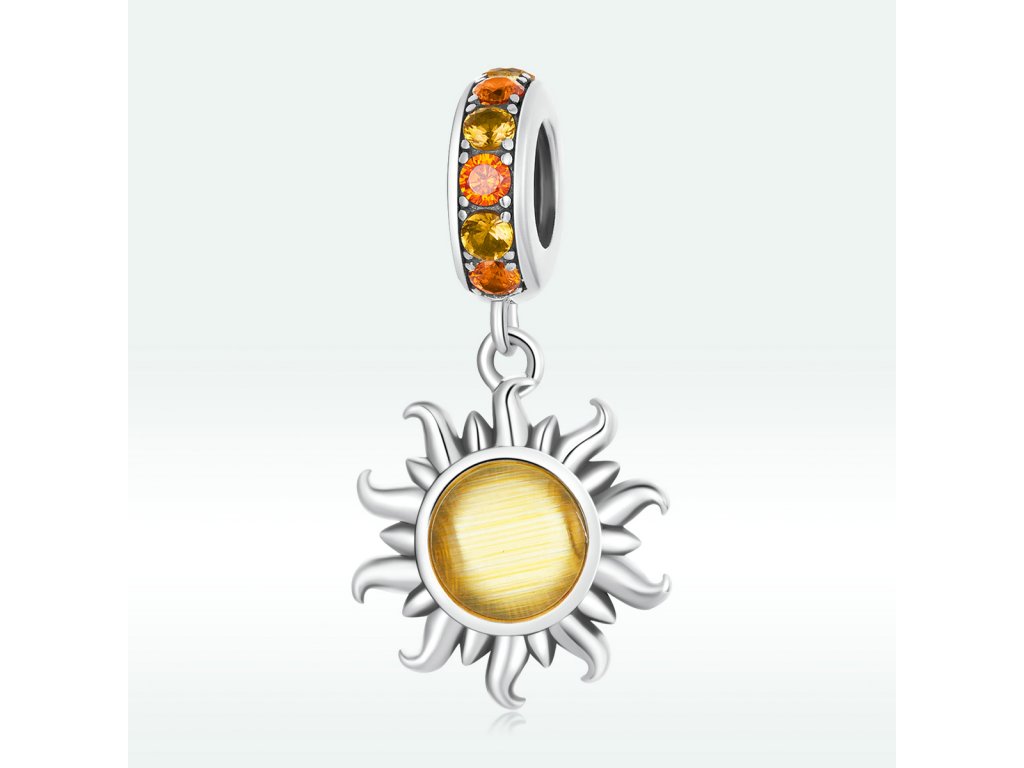 - Strieborný visiaci prívesok v dizajne slnka zdobený zlatistým sklom a trblietavými zirkónmi. Originálny design prívesku, kvalitné spracovanie a materiál, ručne dohotovené.
