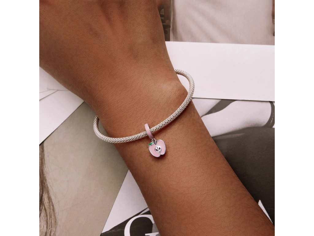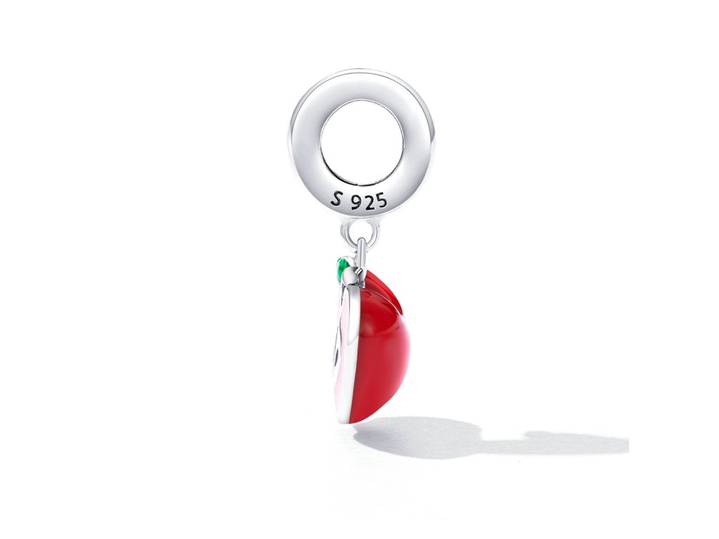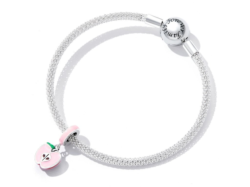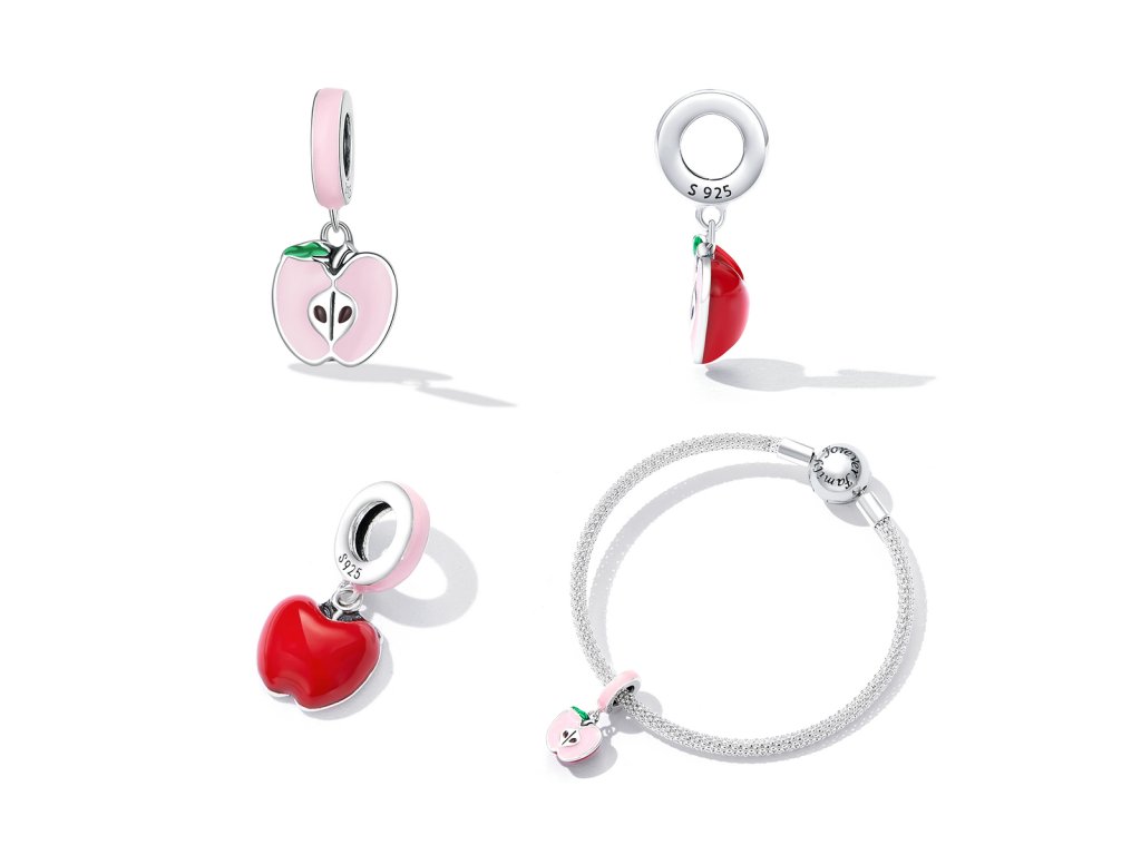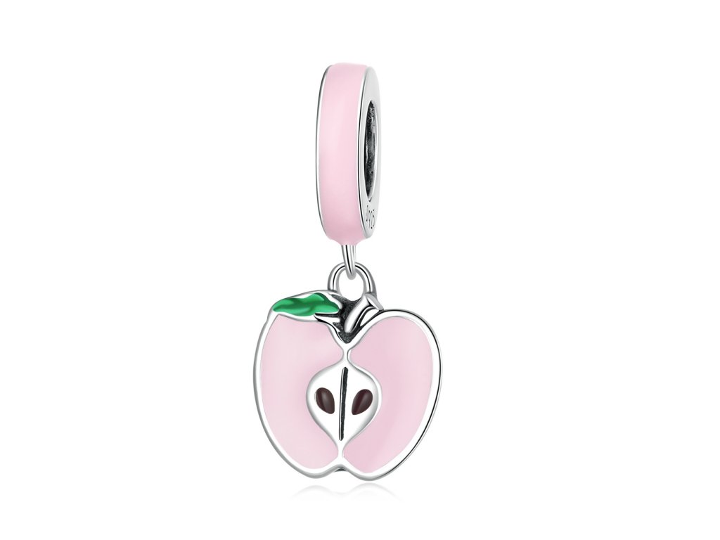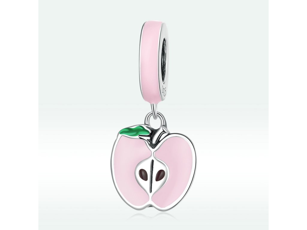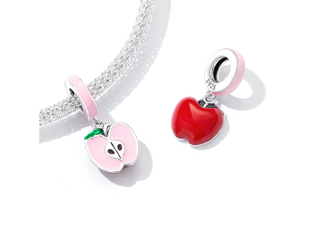 - Strieborný visiaci prívesok v dizajne sladkého jabĺčka zdobeného ručne nanášanou ružovou a červenou glazúrou. Originálny design prívesku, kvalitné spracovanie a materiál, ručne dohotovené.