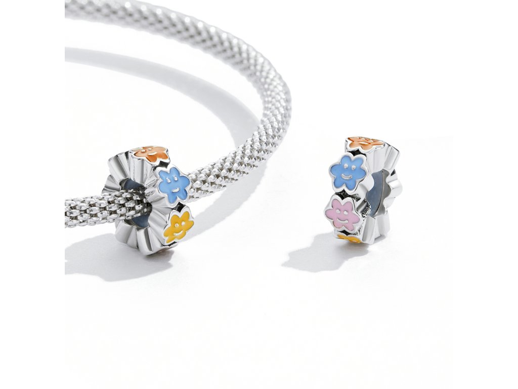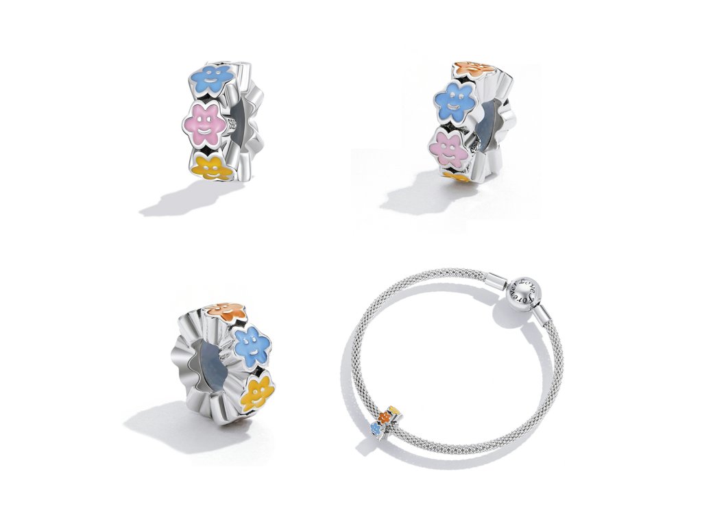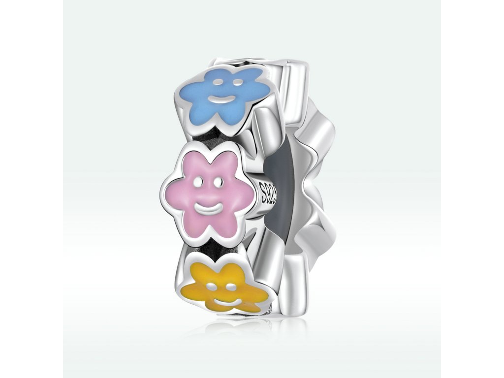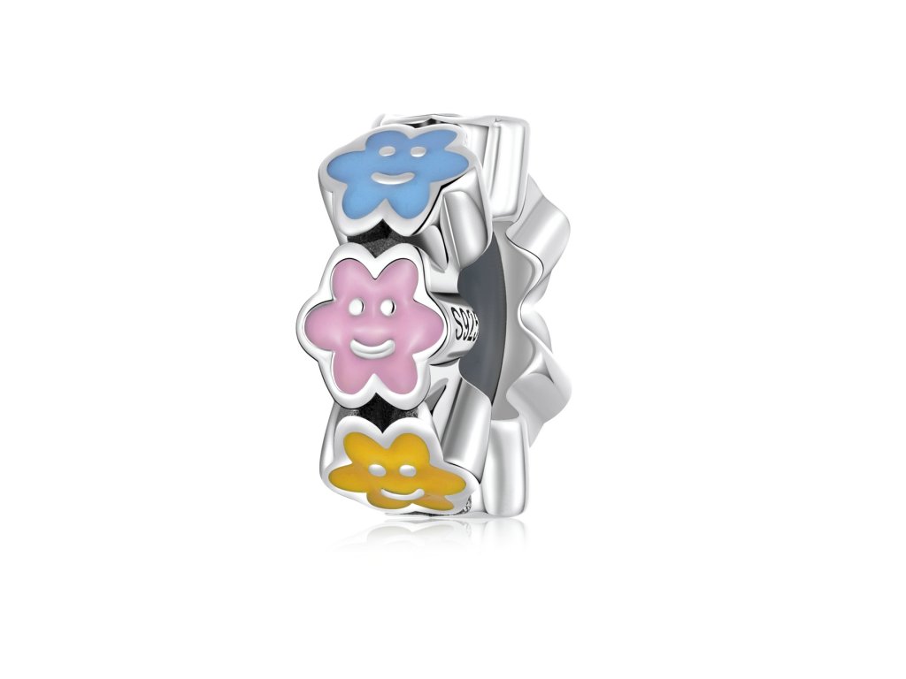 - Strieborný prívesok spacer v dizajne usmievajúcich sa mráčikov zdobených ručne nanášanou farebnou glazúrou. Originálny design prívesku, kvalitné spracovanie a materiál, ručne dohotovené.