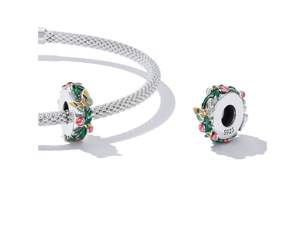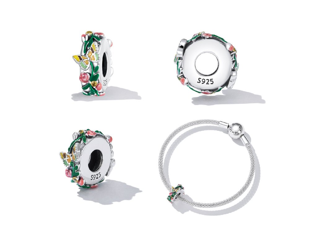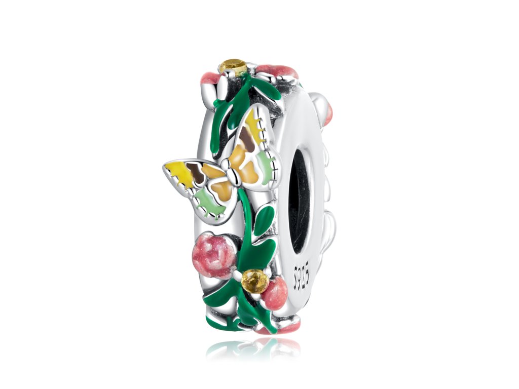 - Strieborný prívesok spacer v dizajne krásnej prírody zdobený ručne nanášanou farebnou glazúrou. Originálny design prívesku, kvalitné spracovanie a materiál, ručne dohotovené.