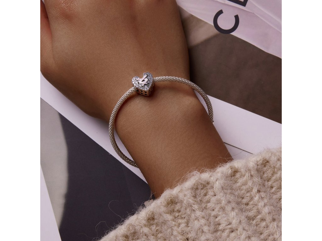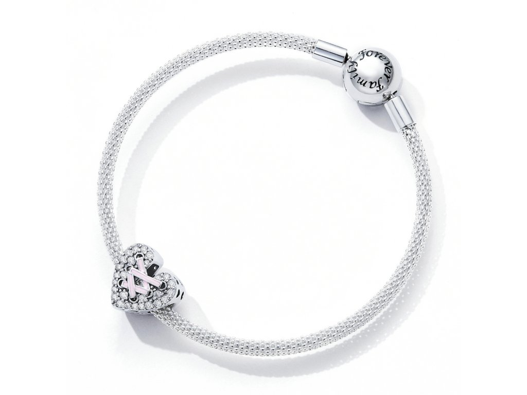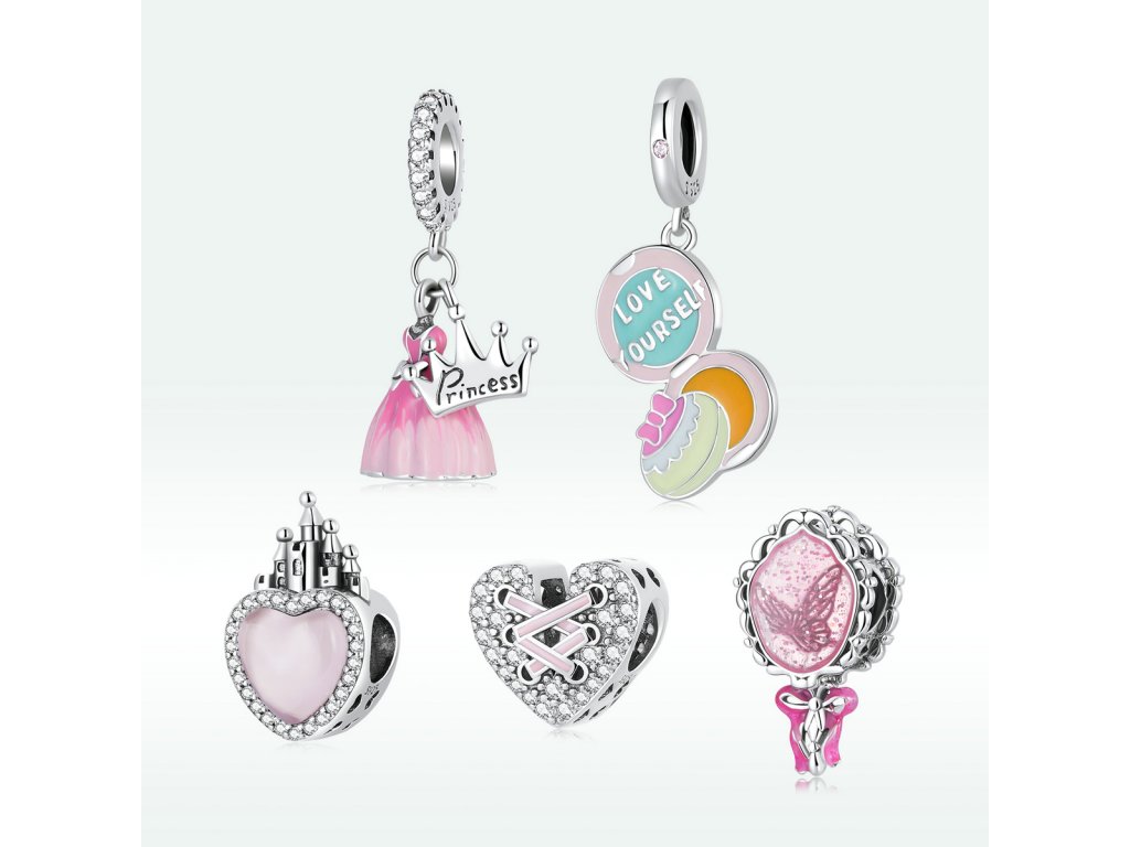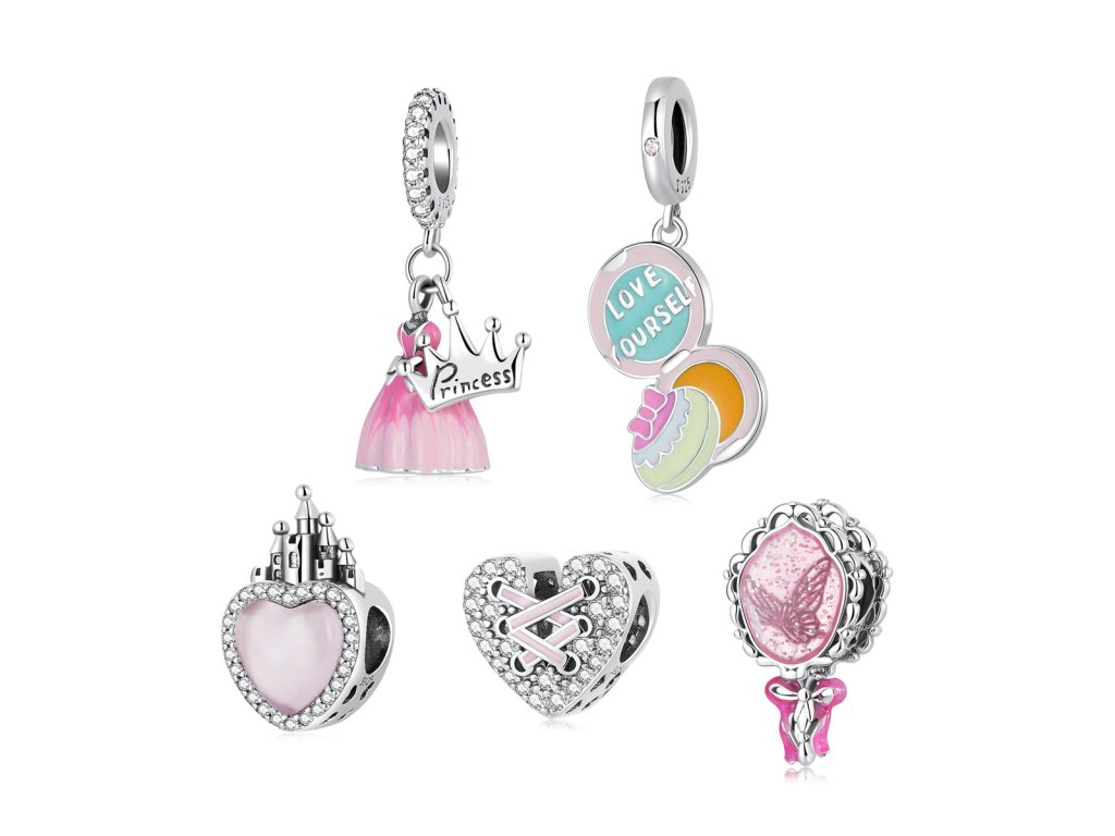 - Strieborný prívesok v tvare srdca so stuhou zdobený čírymi trblietavými zirkónmi a ručne nanášanou ružovou glazúrou. Prívesok je tiež zdobený ručne vyrezávanými milovanými srdiečkami po stranách. Originálny design prívesku, kvalitné spracovanie a materiál, ručne dohotovené.
