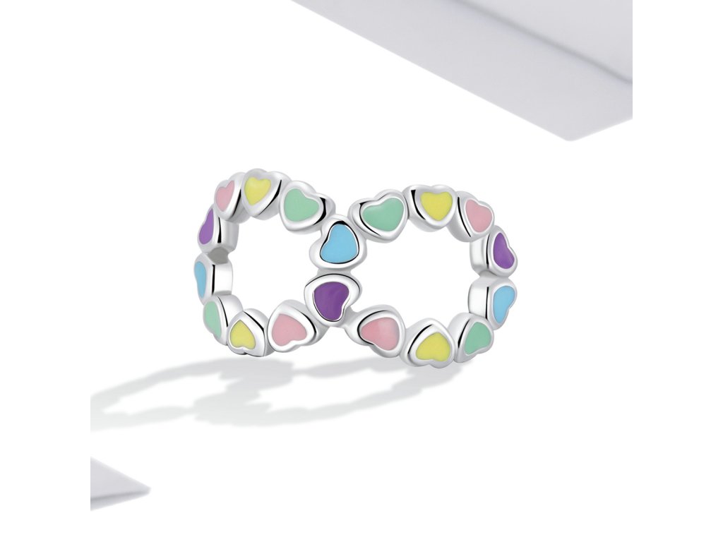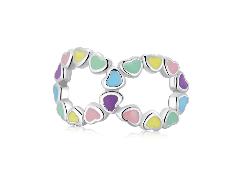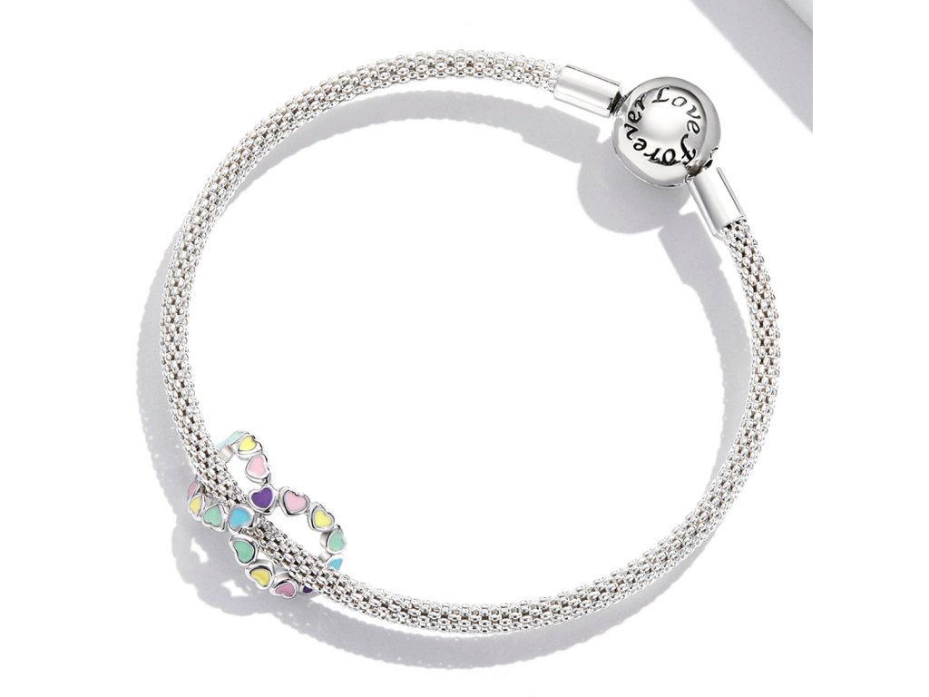 - Strieborný prívesok v dizajne symbolu nekonečnej lásky zdobený srdiečkami s ručne nanášanou farebnou glazúrou. Originálny design prívesku, kvalitné spracovanie a materiál, ručne dohotovené.