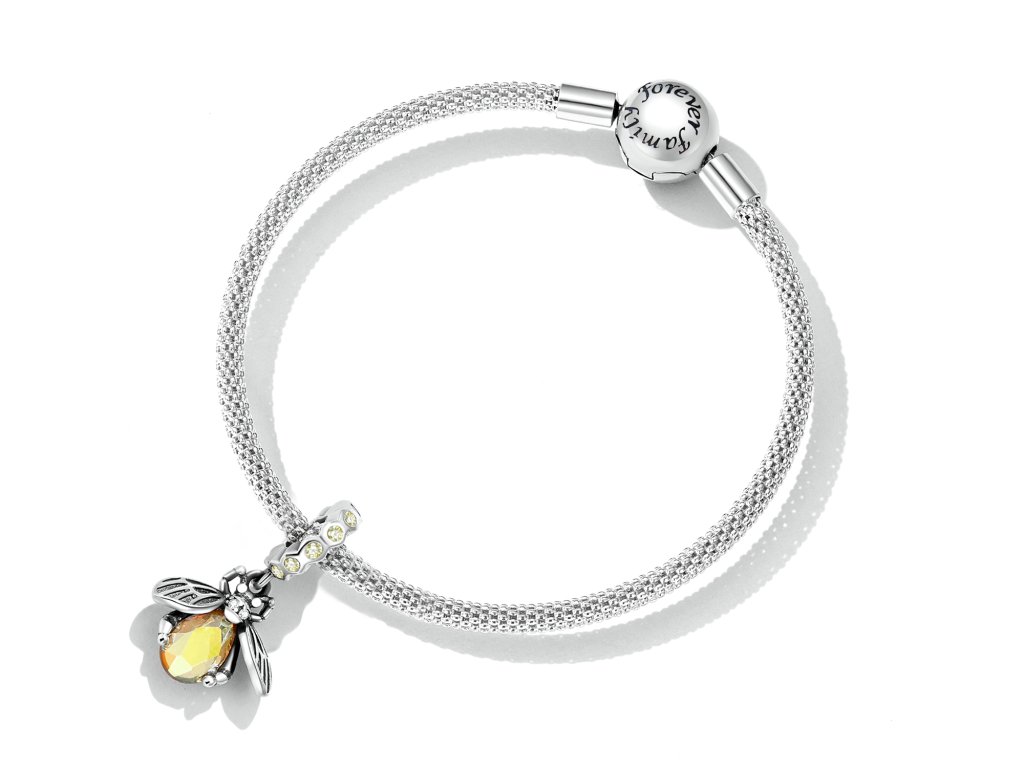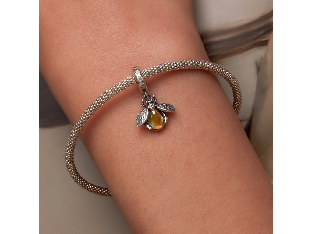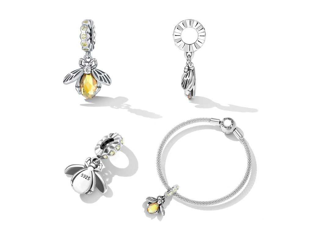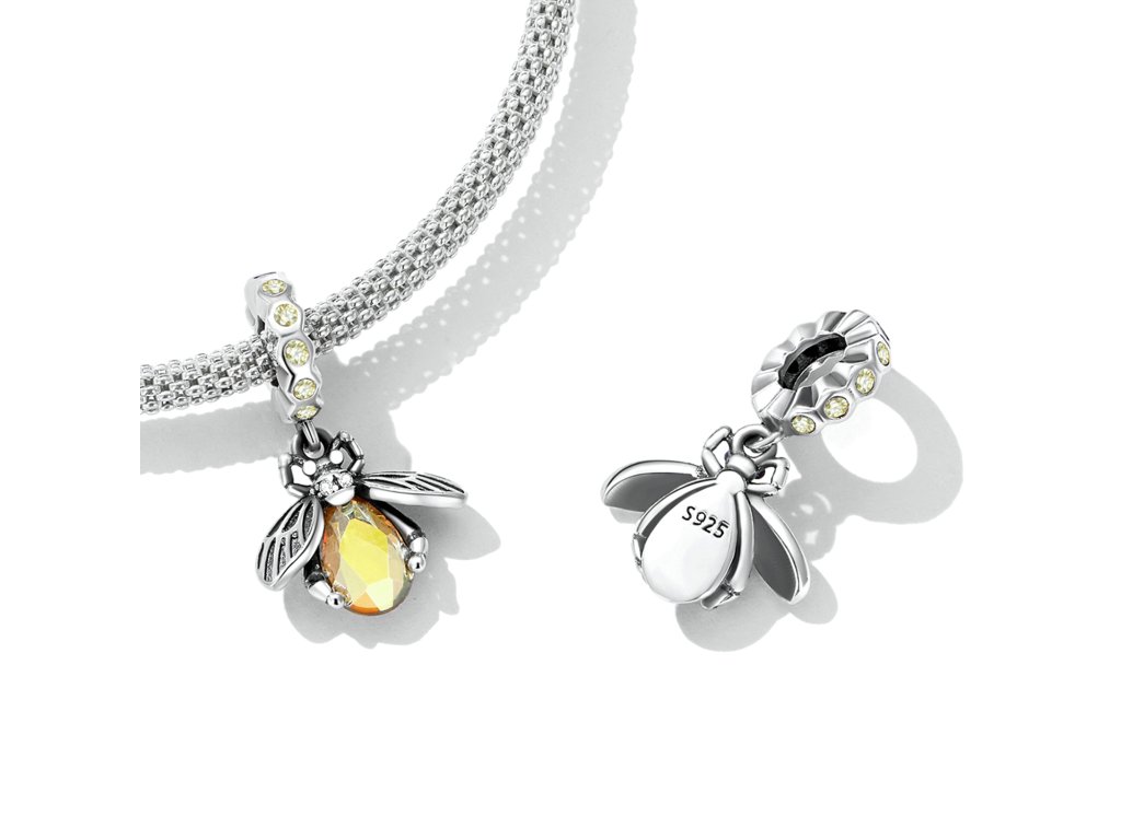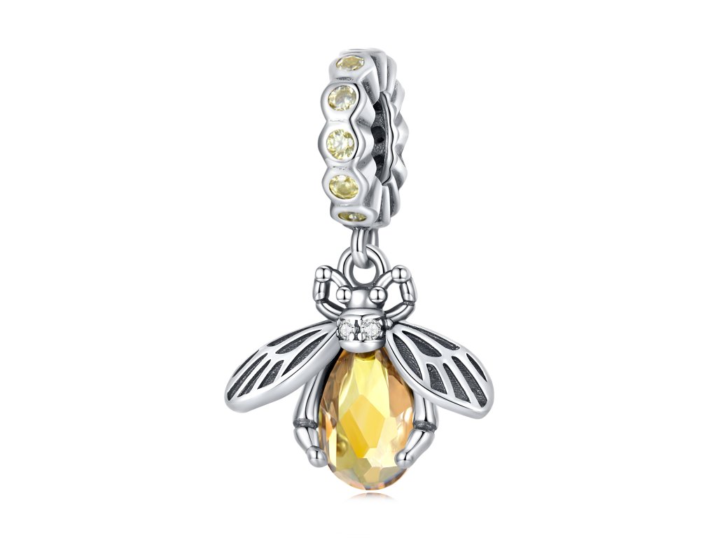 - Strieborný visiaci prívesok v dizajne včielky zdobené veľkým brúseným sklom a zlatistými trblietavými zirkónmi. Originálny design prívesku, kvalitné spracovanie a materiál, ručne dohotovené.