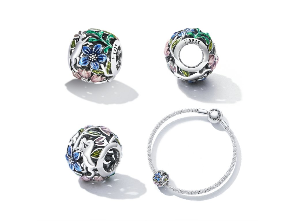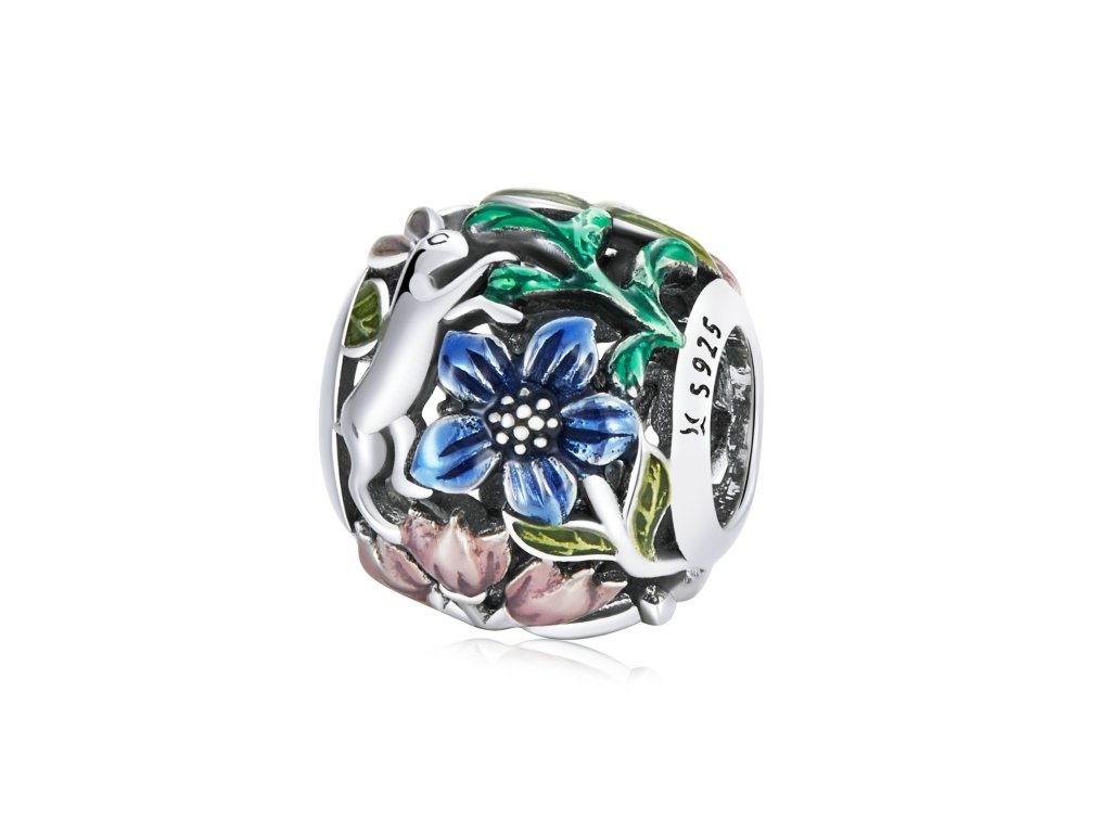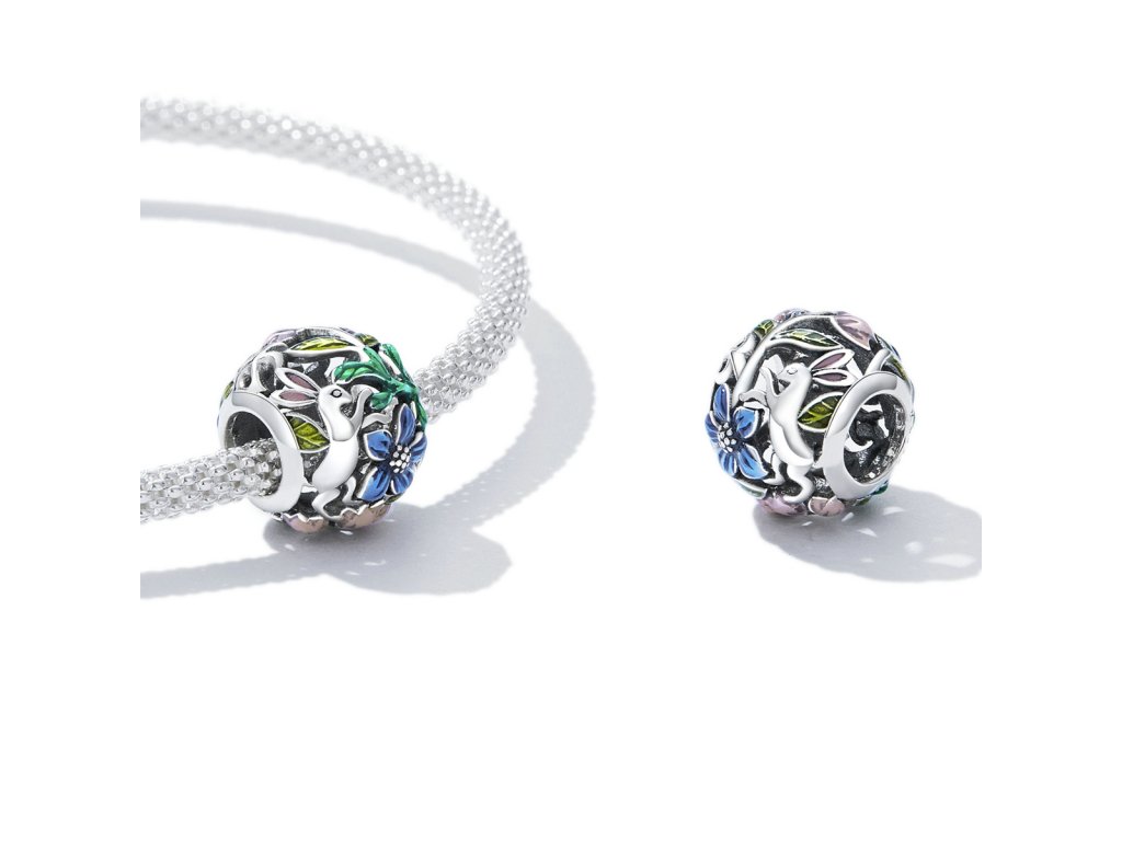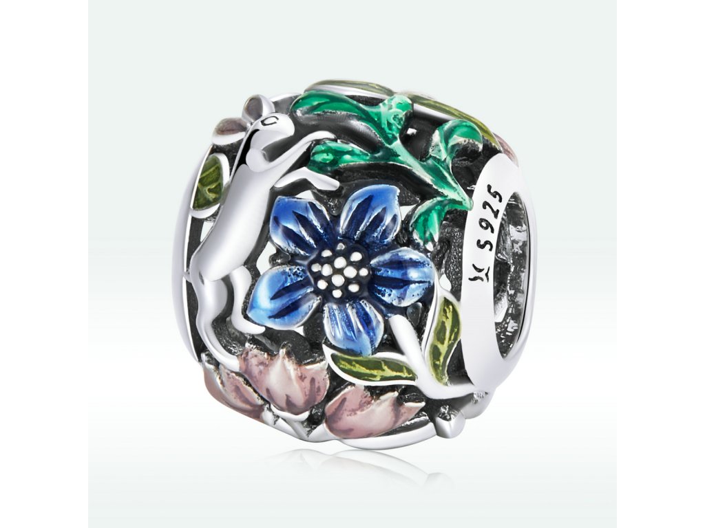 - Strieborný prívesok / korálik v dizajne roztomilého zajačika s kvetmi a lístkami zdobenými ručne nanášanou farebnou glazúrou. Originálny design prívesku, kvalitné spracovanie a materiál, ručne dohotovené.