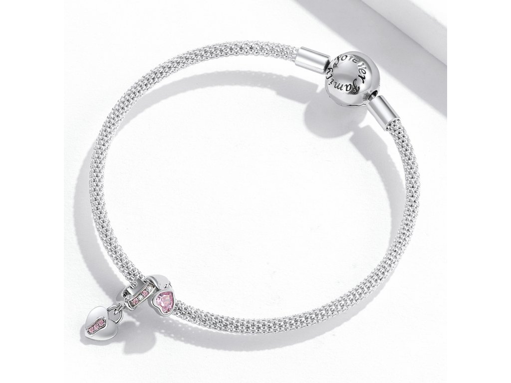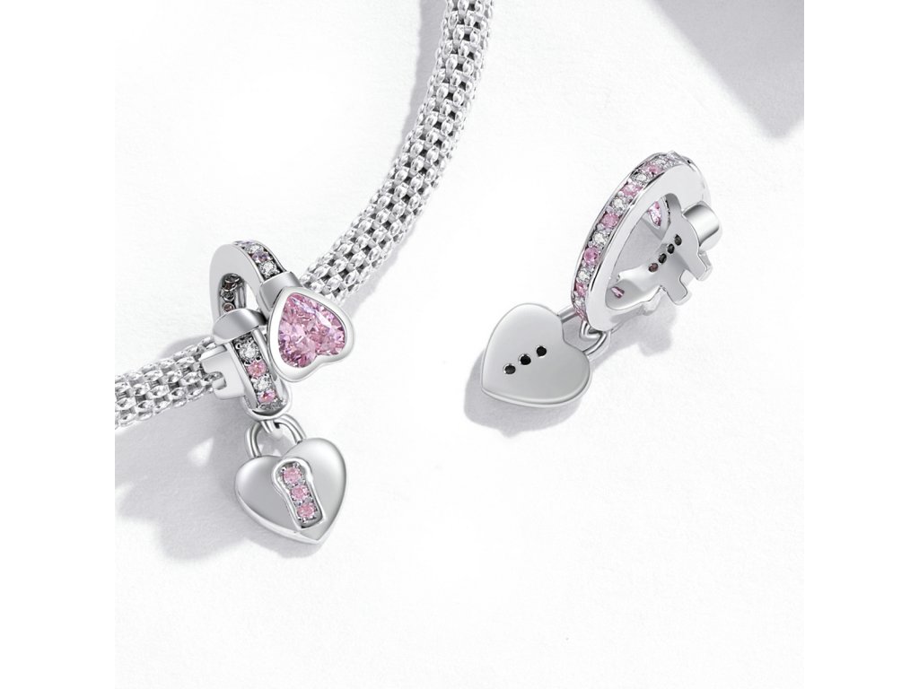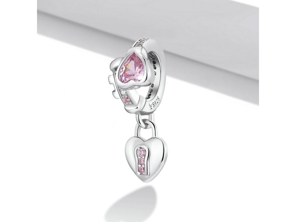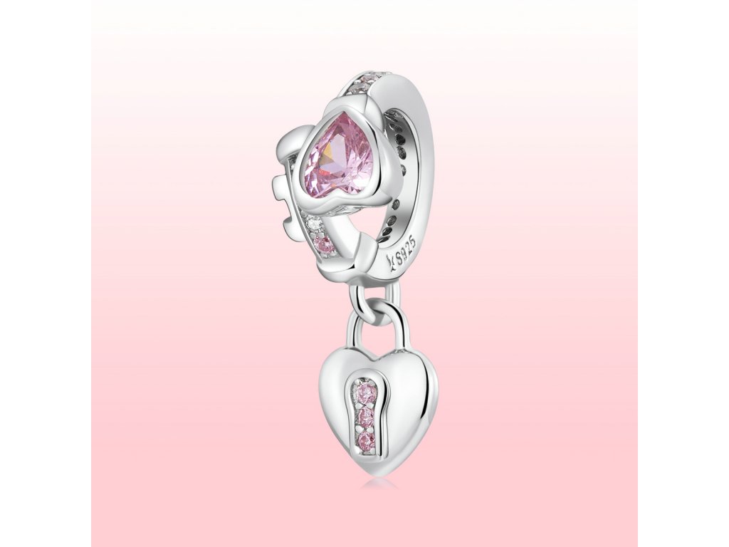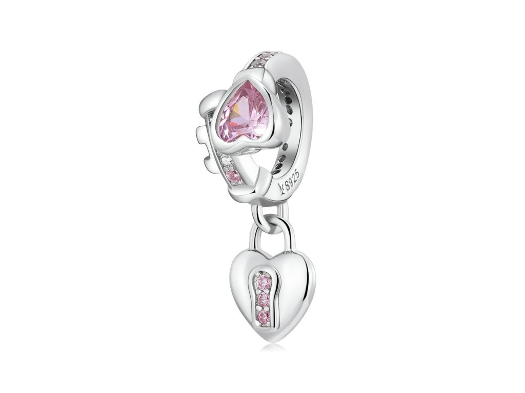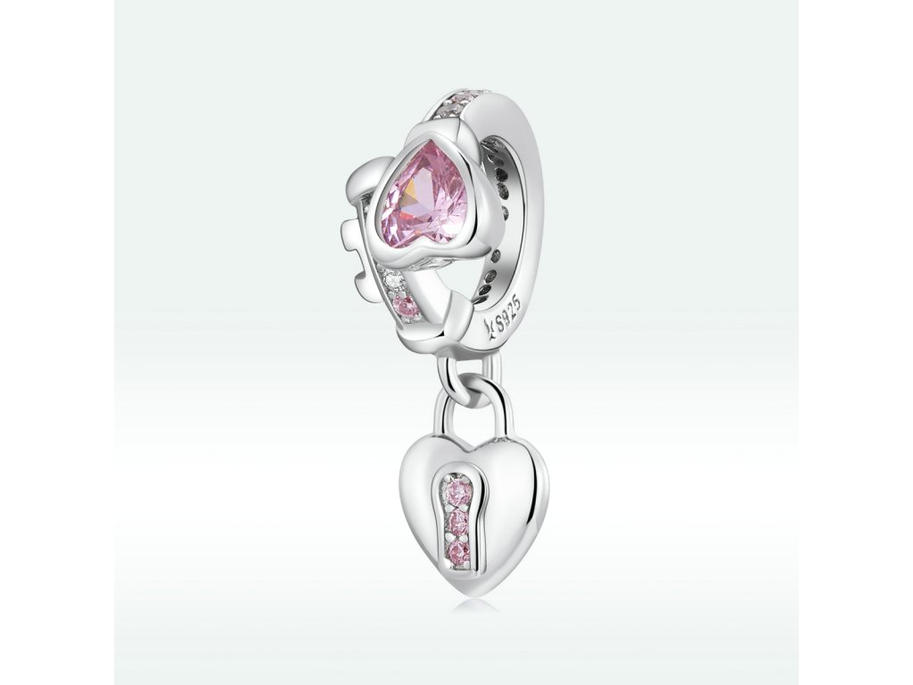 - Strieborný prívesok v dizajne romantického kľúča a zámku zdobeného čírymi trblietavými a ružovými zirkónmi. Originálny design prívesku, kvalitné spracovanie a materiál, ručne dohotovené.