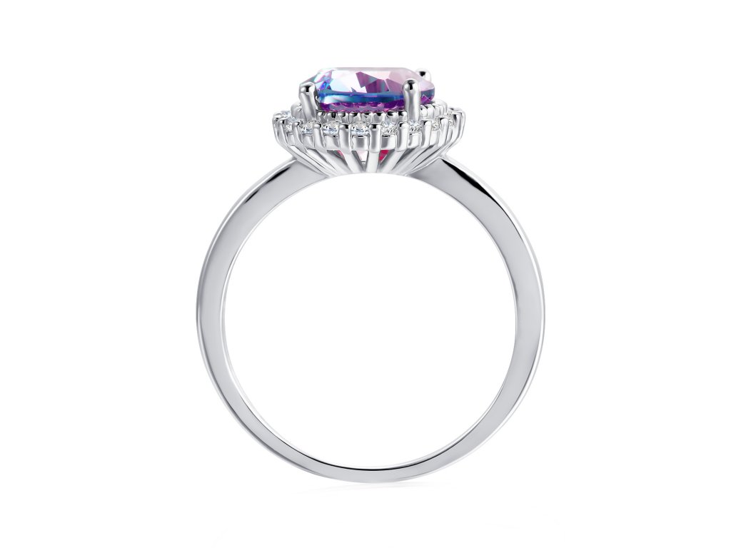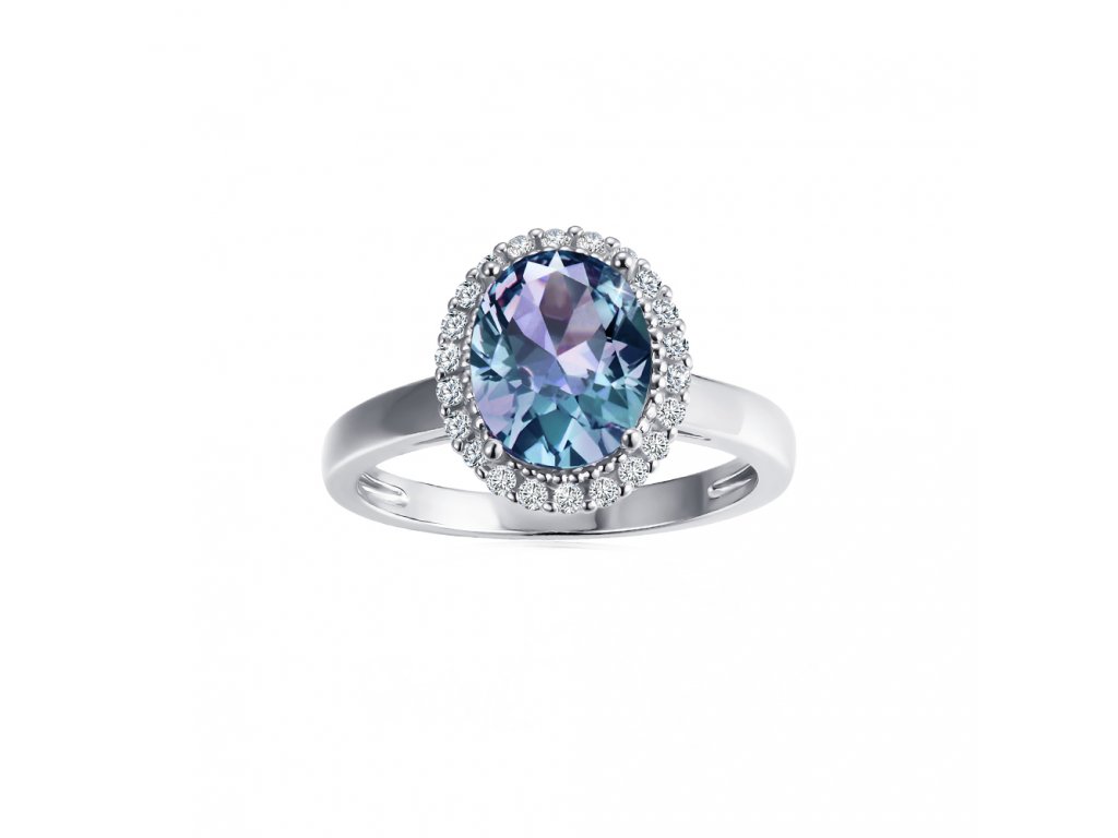 - Hypoalergenie strieborný prsteň pozlátený 18 karátovým bielym zlatom zdobený Alexandritom a zirkónmi. Originálny dizajn prsteňa, kvalitné spracovanie a materiál, ručne dohotovené.