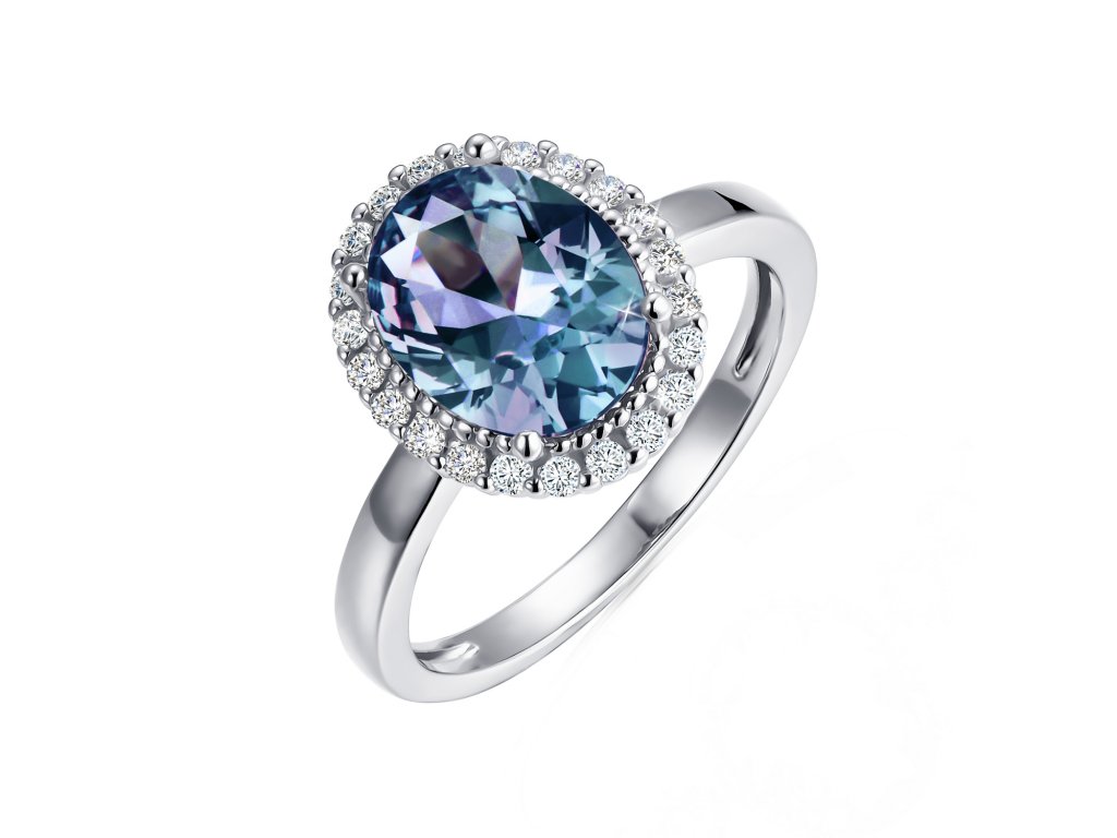 Royal Fashion strieborný prsteň pozlátený 18k biele zlato Alexandrit