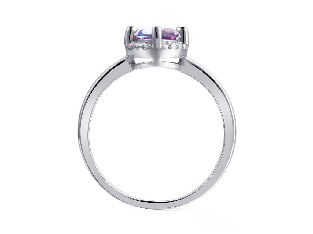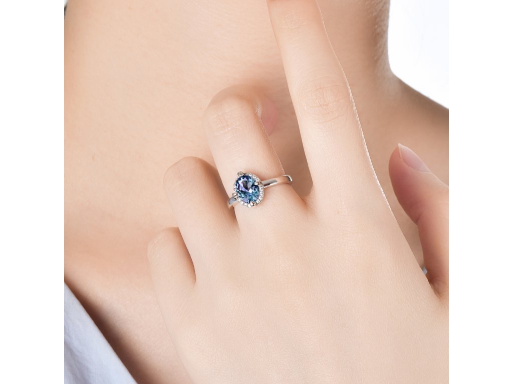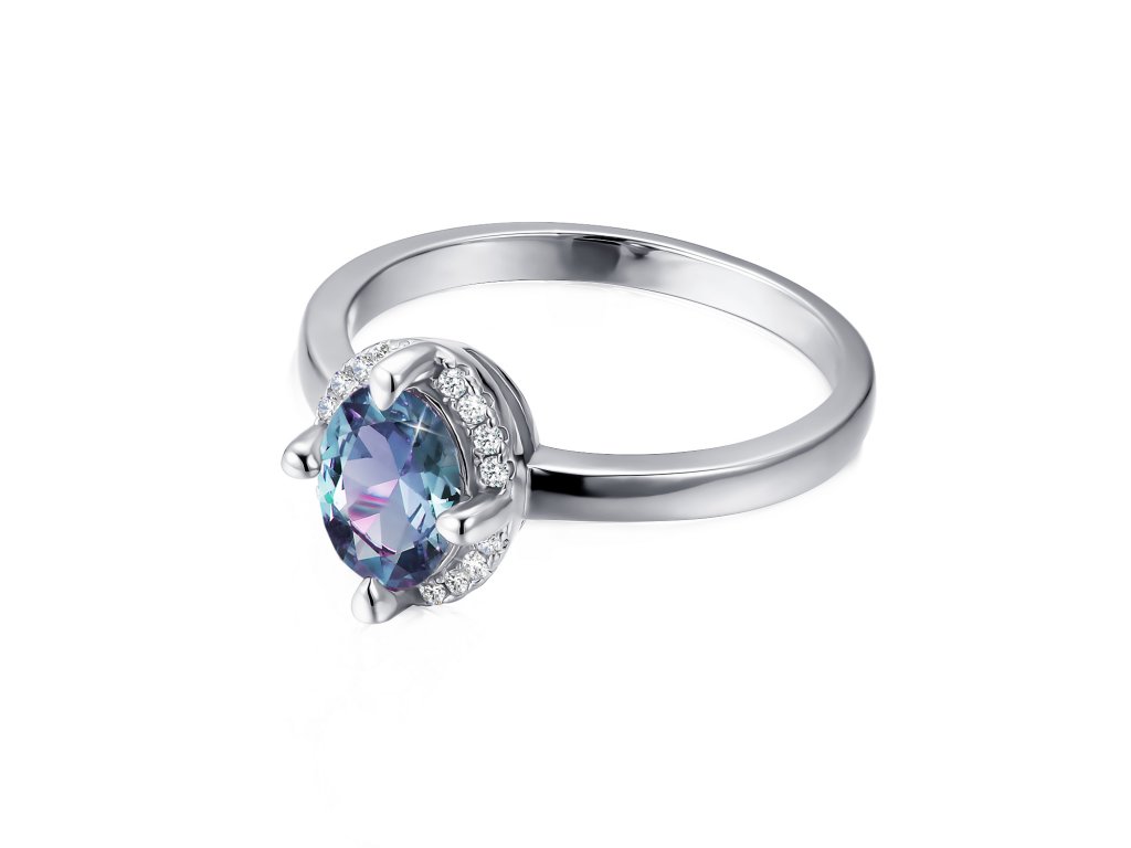 - Hypoalergenie strieborný prsteň pozlátený 18 karátovým bielym zlatom zdobený Alexandritom a zirkónmi. Originálny dizajn prsteňa, kvalitné spracovanie a materiál, ručne dohotovené.