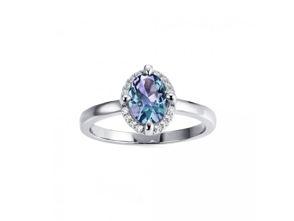 Royal Fashion strieborný prsteň pozlátený 18k biele zlato Alexandrit