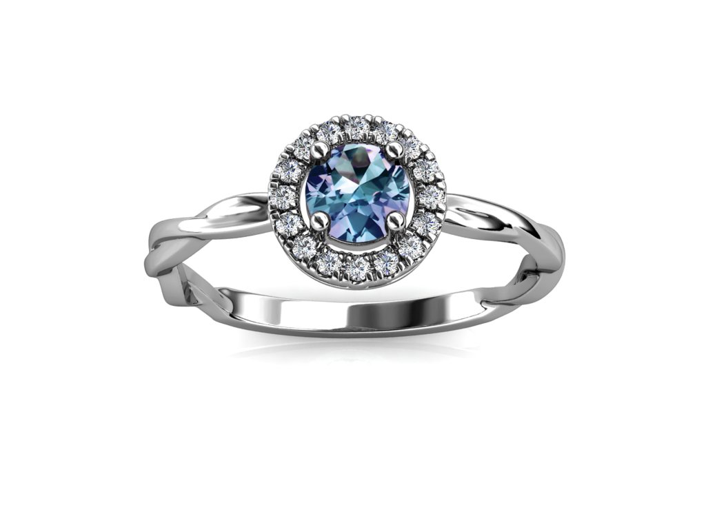 Royal Fashion strieborný prsteň pozlátený 18k biele zlato Alexandrit