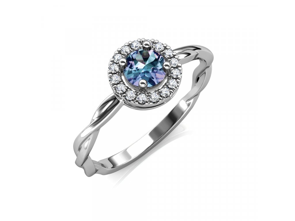 - Hypoalergenie strieborný prsteň pozlátený 18 karátovým bielym zlatom zdobený Alexandritom a zirkónmi. Originálny dizajn prsteňa, kvalitné spracovanie a materiál, ručne dohotovené.
