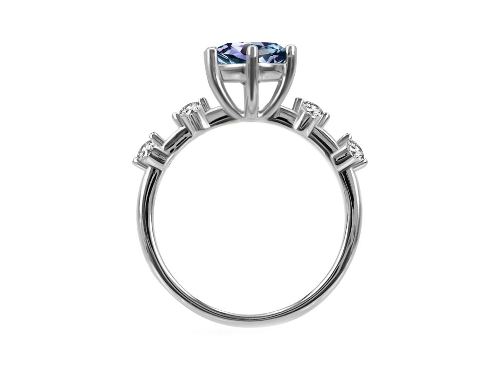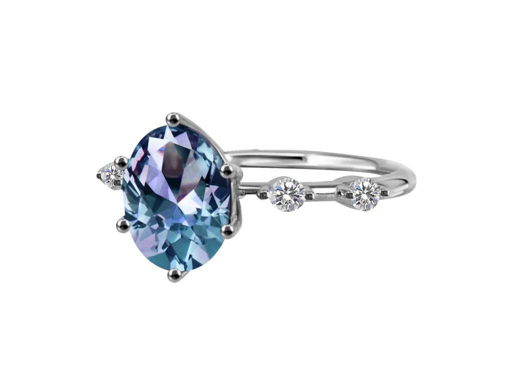 • Hypoalergenie strieborný prsteň pozlátený 18 karátovým bielym zlatom zdobený Alexandritom a zirkónmi. Originálny dizajn prsteňa, kvalitné spracovanie a materiál, ručne dohotovené.