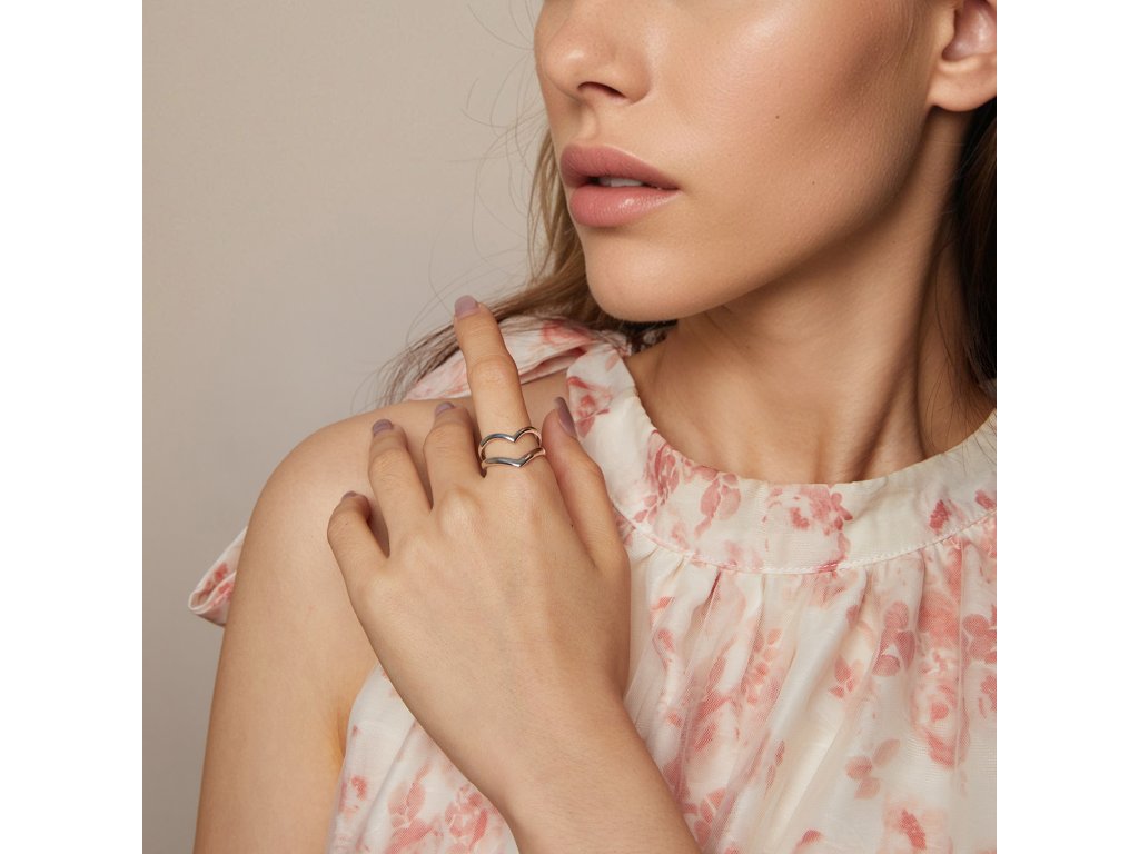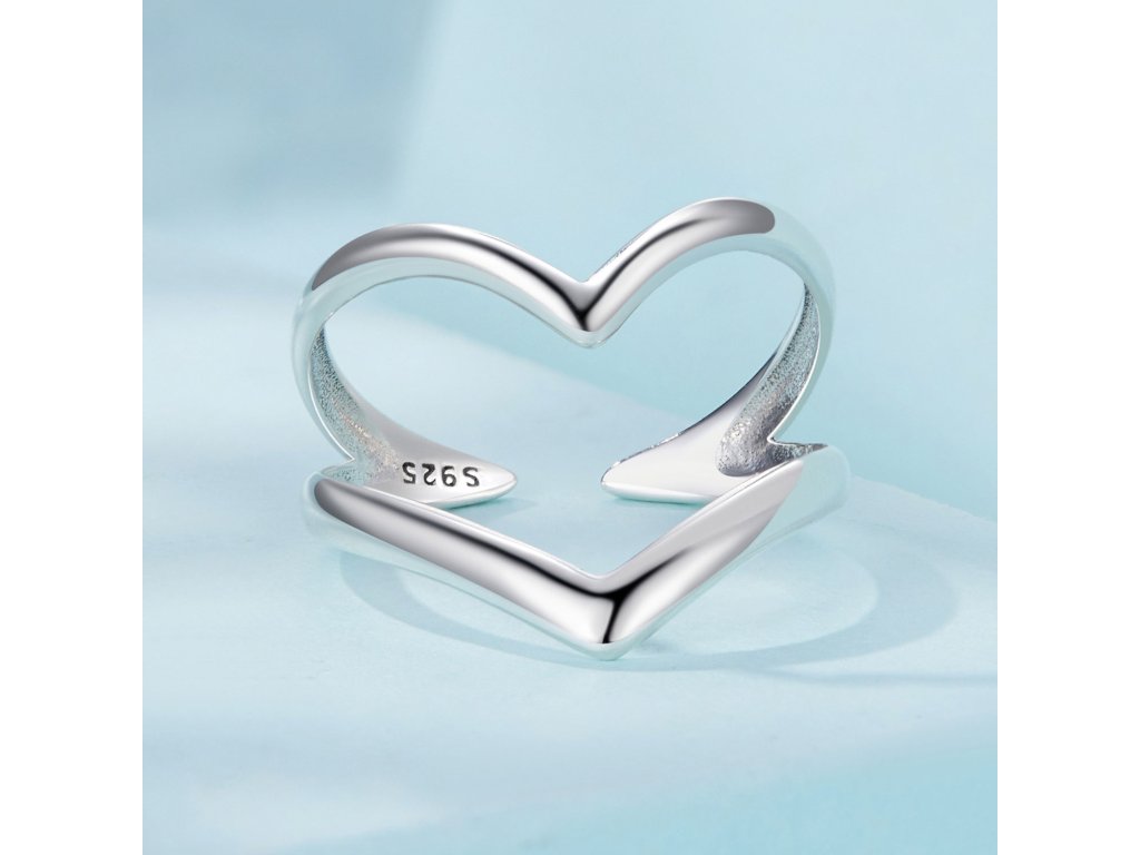 - Strieborný prsteň bez osadenia v tvare srdca. Originálny dizajn prsteňa, kvalitné spracovanie a materiál, ručne dohotovené.