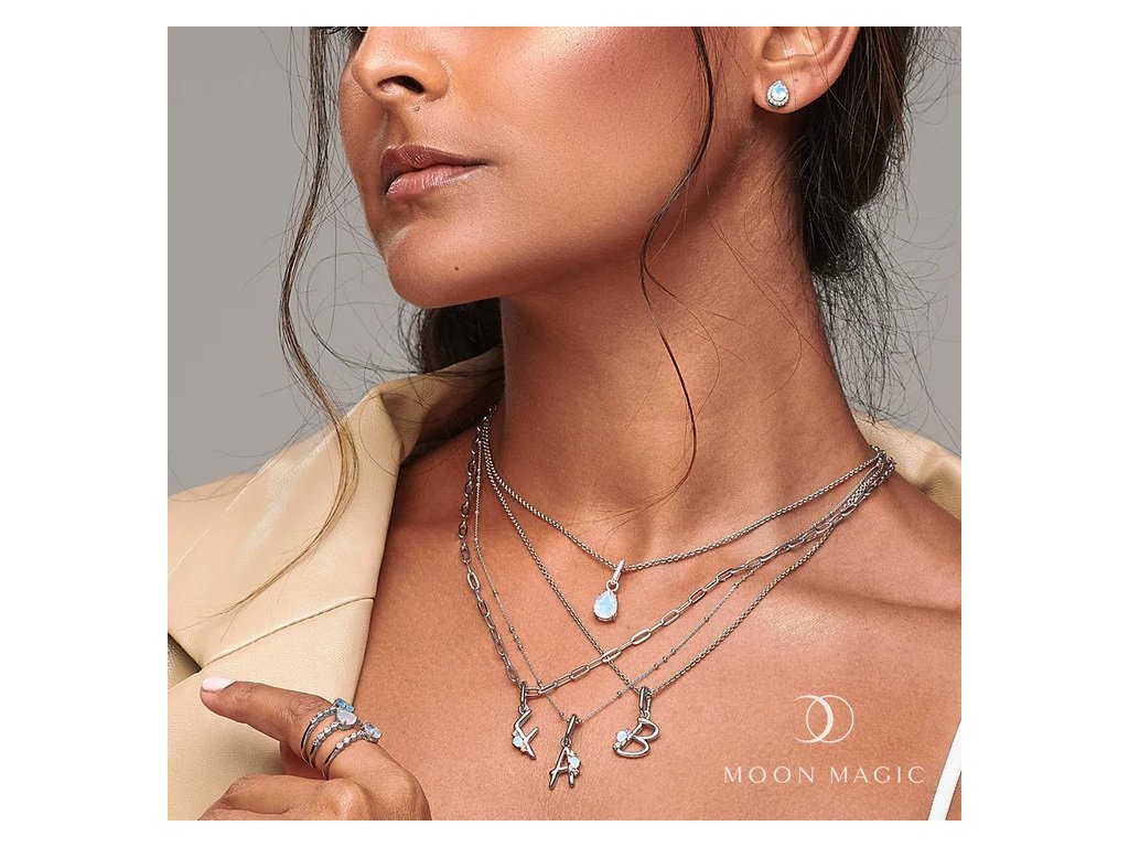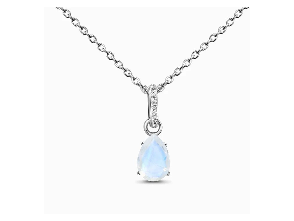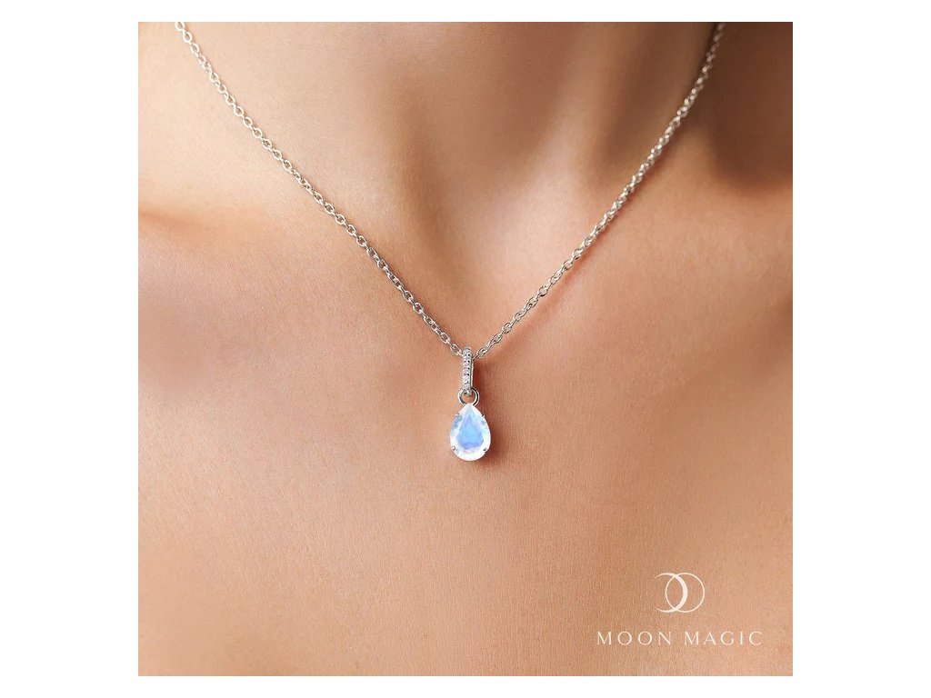 - Luxusný strieborný rhodiovaný náhrdelník Kvapka obohatený mesačným dúhovým drahokamom Moonstonom a čírymi trblietavými drahokamami topazmi. Originálny dizajn náhrdelníka, kvalitné spracovanie a materiál, ručne dohotovené.