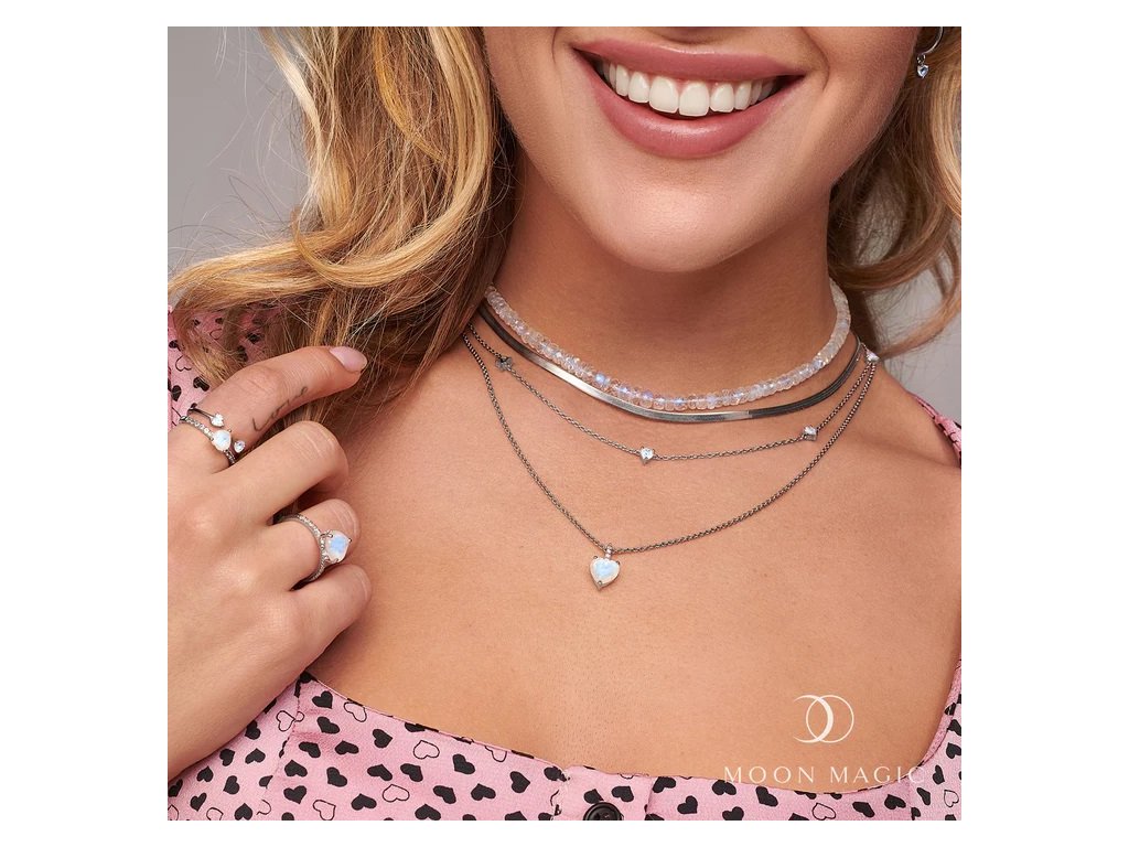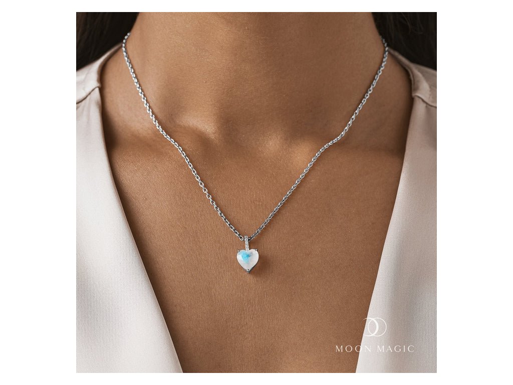 - Luxusný strieborný rhodiovaný náhrdelník Srdce obohatený mesačným dúhovým drahokamom Moonstonom a čírymi trblietavými drahokamami topazmi. Originálny dizajn náhrdelníka, kvalitné spracovanie a materiál, ručne dohotovené.