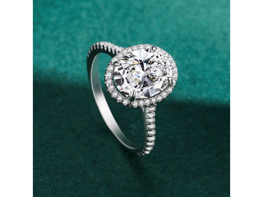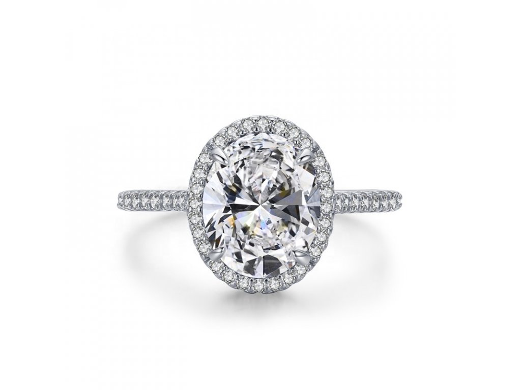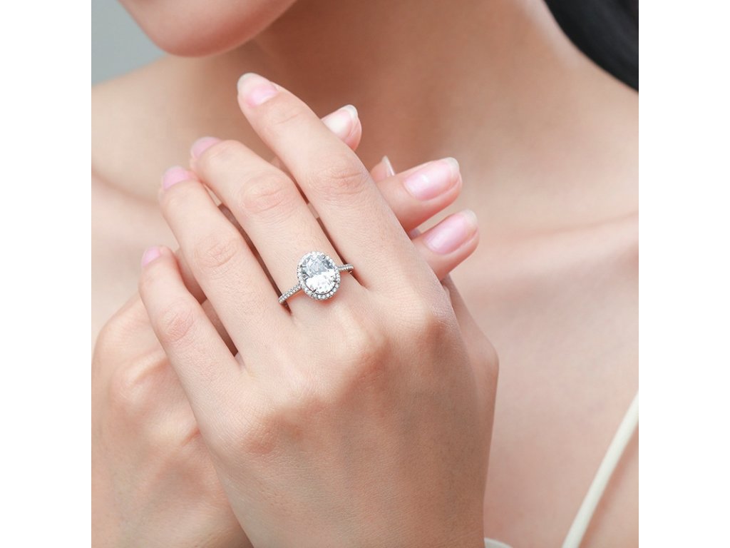 - Strieborný rhodiovaný prsteň v štýlovom dizajne posiaty čírymi trblietavými zirkónmi po svojom obvode. Stred prsteňa tvorí číry brúsený zirkóniový kameň v tvare oválu. Originálny dizajn prsteňa, kvalitné spracovanie a materiál, ručne dohotovené.