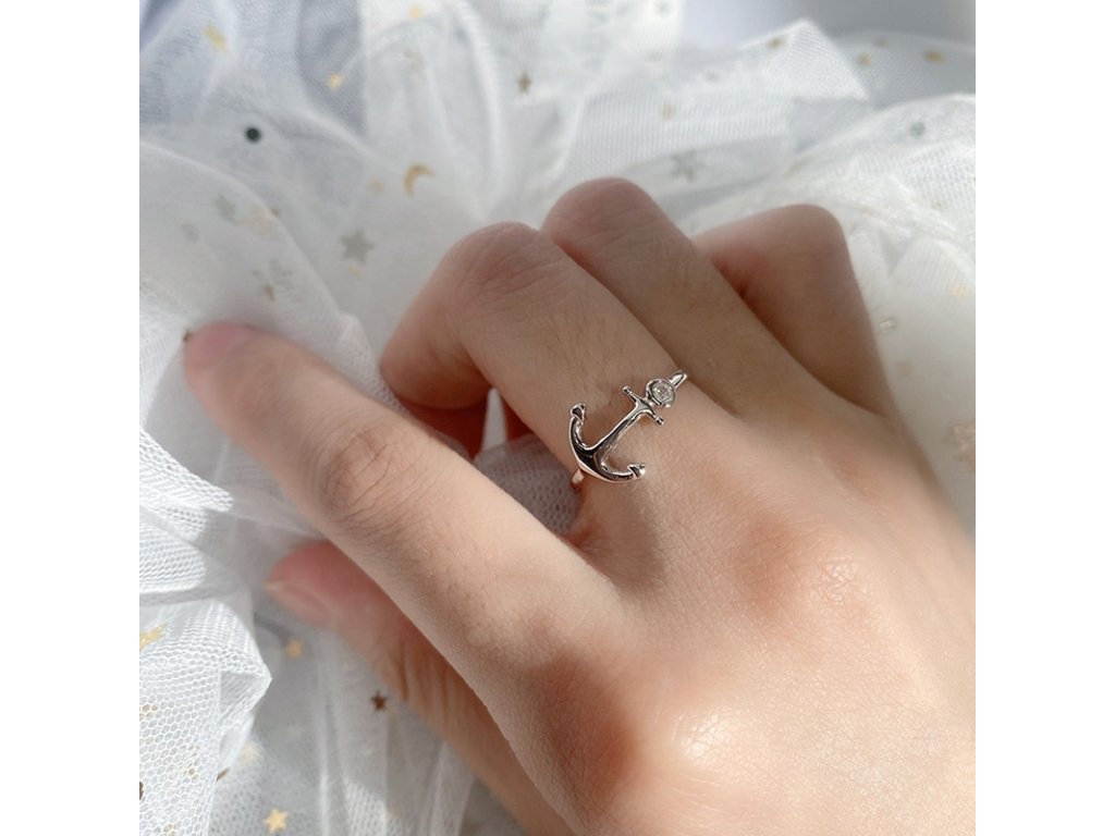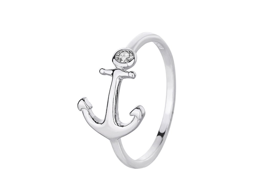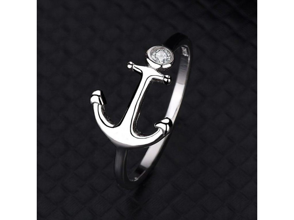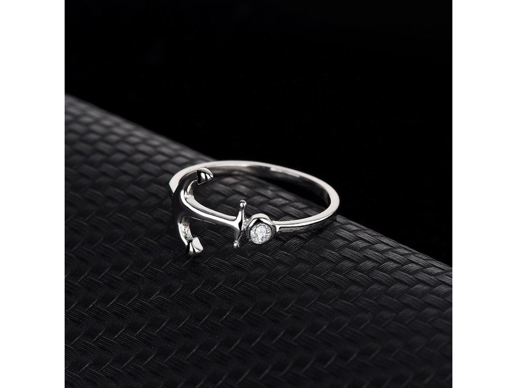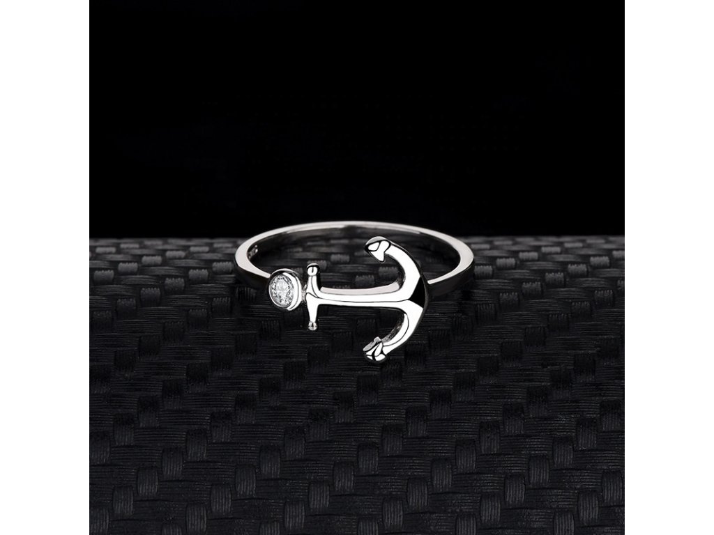 - Strieborný rhodiovaný prsteň v dizajne kotvy zdobené čírym trblietavým zirkónom. Originálny dizajn prsteňa, kvalitné spracovanie a materiál, ručne dohotovené.