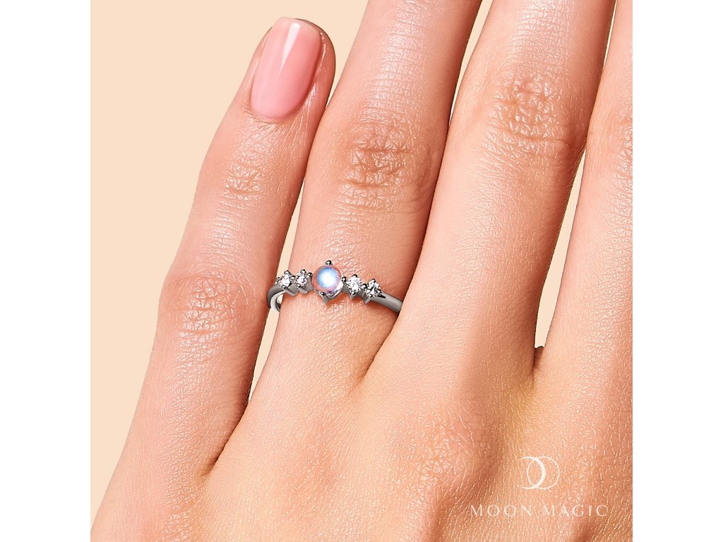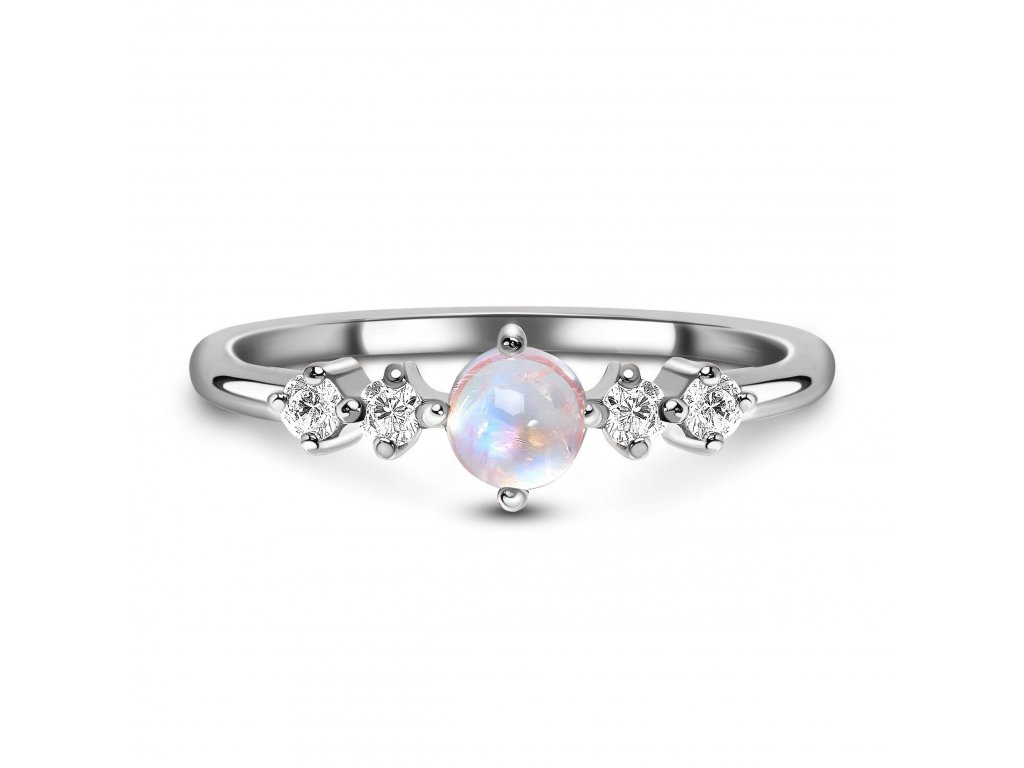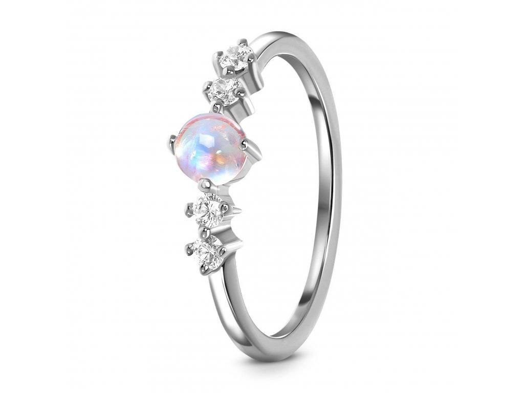 - Luxusný strieborný rhodiovaný prsteň Rozkoš obohatený mesačným dúhovým drahokamom Moonstonom a čírymi trblietavými drahokamami topazmi. Originálny dizajn prsteňa, kvalitné spracovanie a materiál, ručne dohotovené.