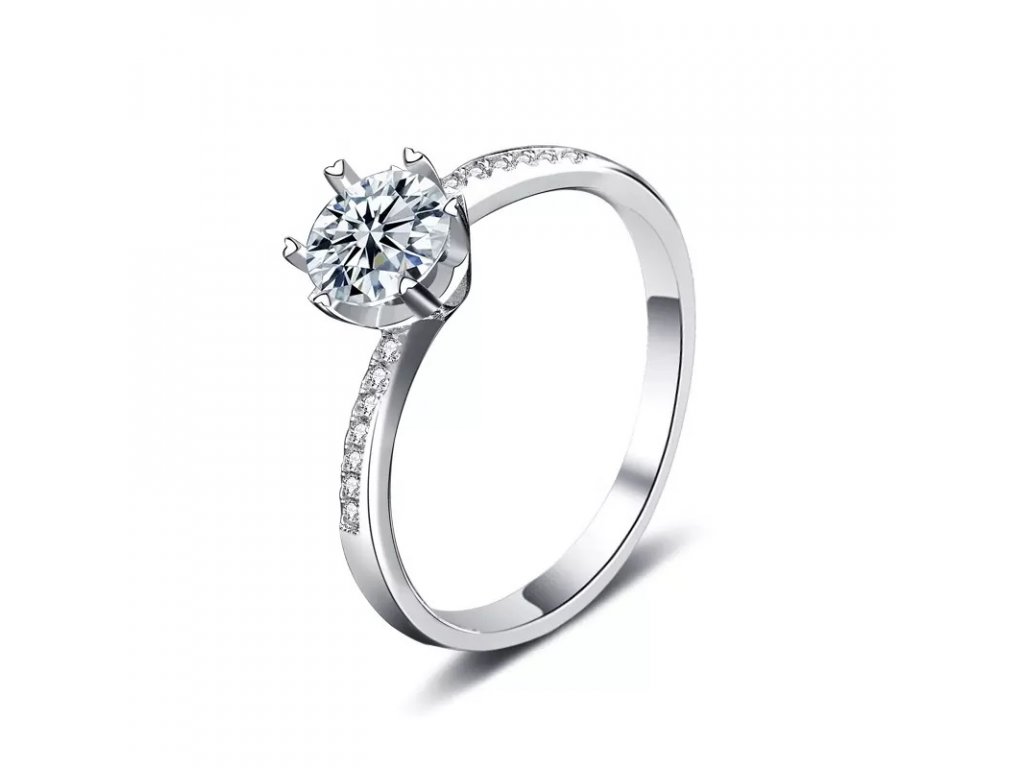 Royal Fashion strieborný rhodiovaný prsteň s drahokamom moissanitom