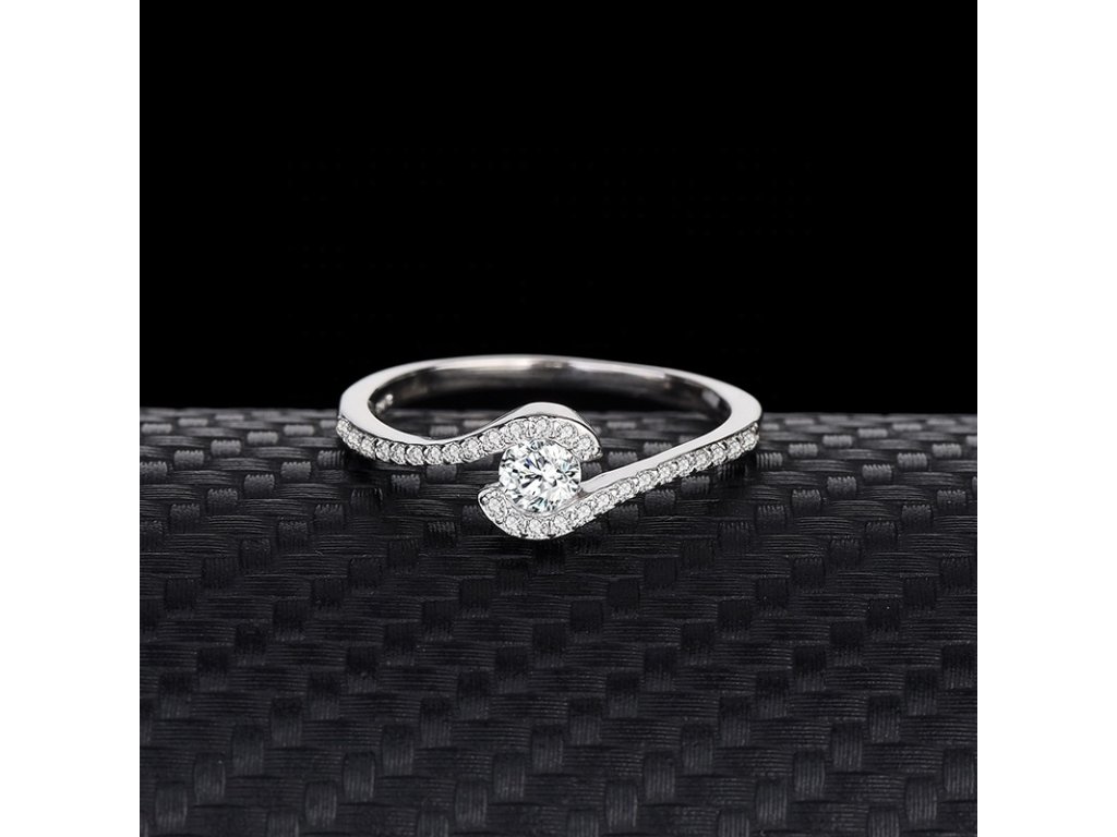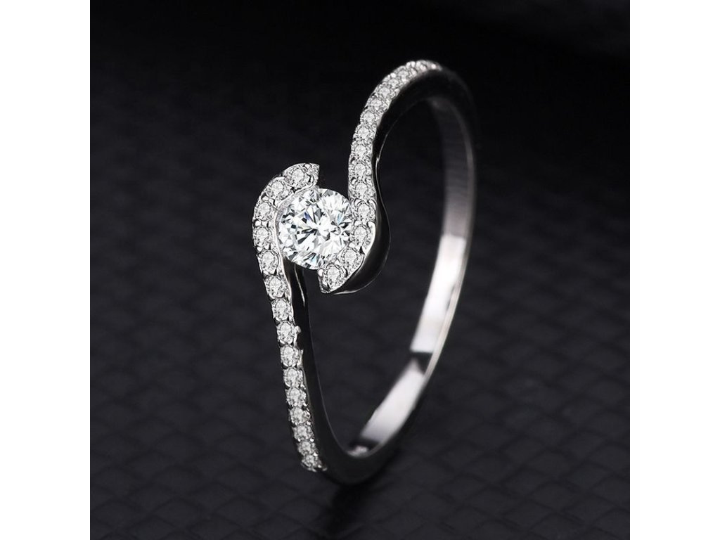 - Strieborný rhodiovaný prsteň Trblietavé prepojenie zdobený ručne posádzanými čírymi zirkónmi. Originálny dizajn prsteňa, kvalitné spracovanie a materiál, ručne dohotovené.