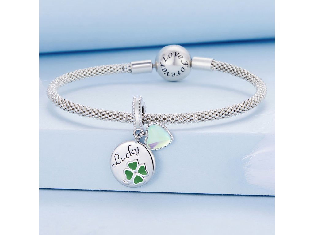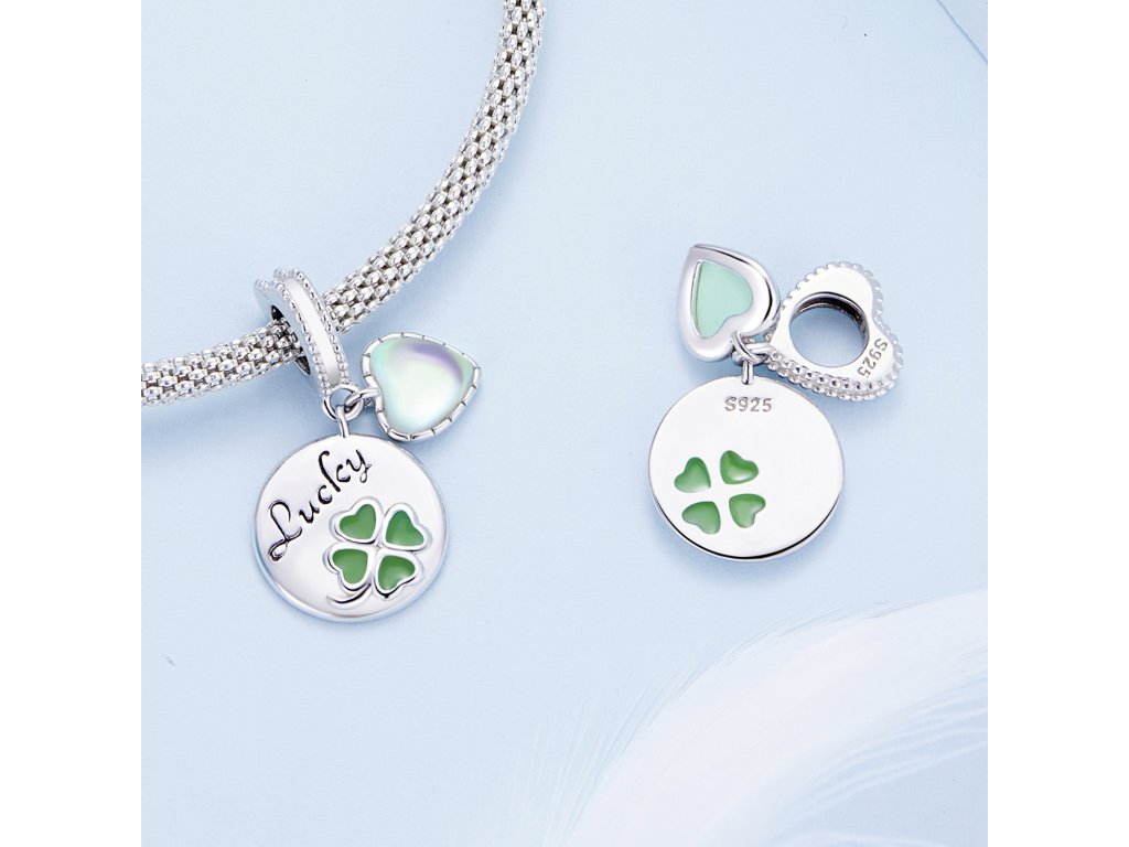 - Strieborný visiaci prívesok štvorlístok pre šťastie